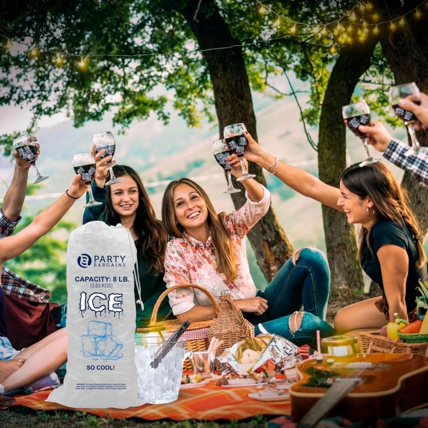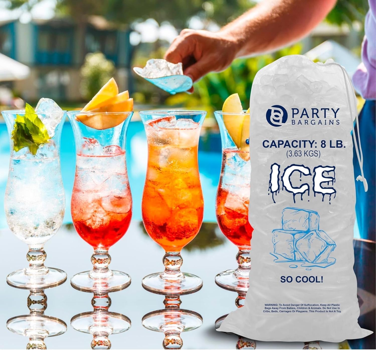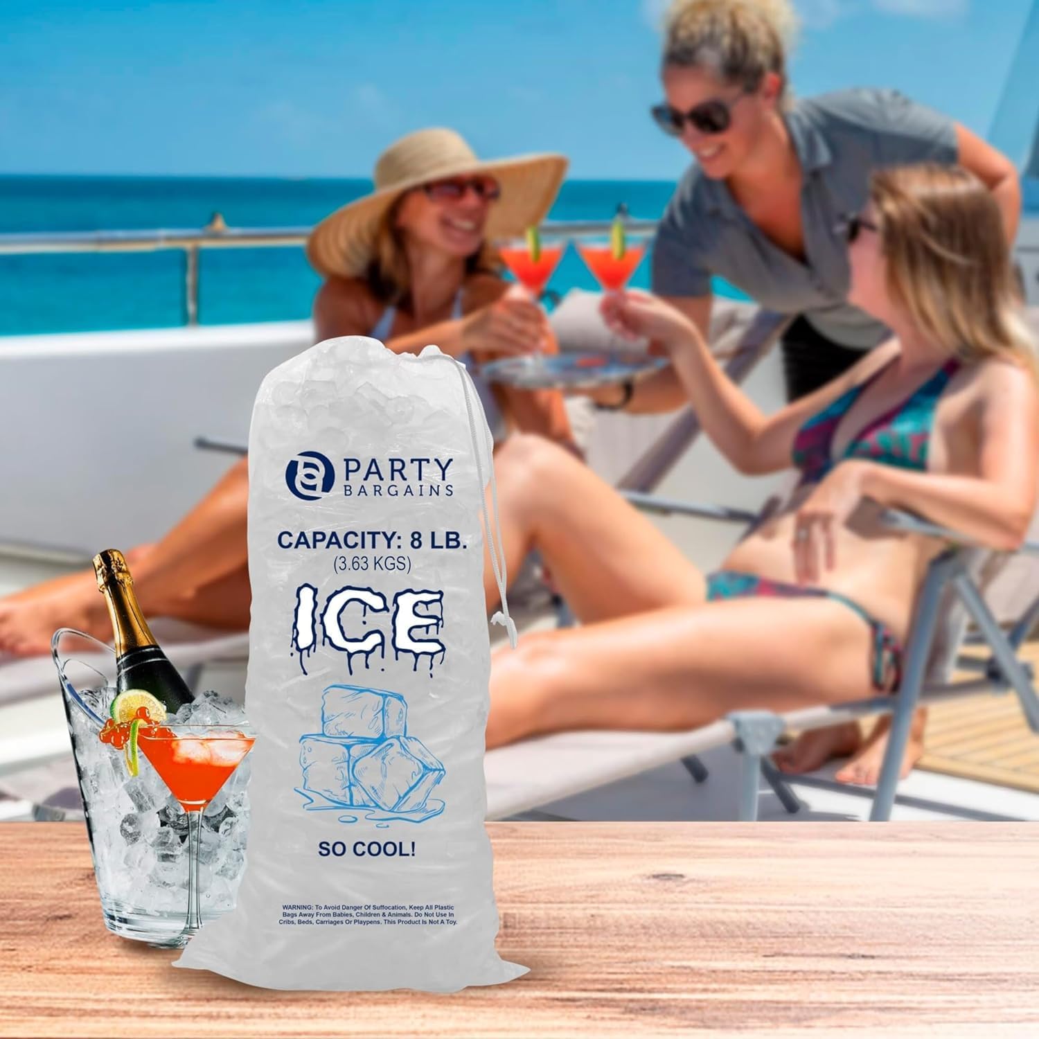 Party Bargains 8 lb Plastic Drawstring Ice Bags 50 Count 19″ x 11″ Durable Heavy Duty Ice Storage Bags for Parties Catering Coolers Outdoor Events | Tear Resistant, Leak Proof, Easy Carry Closure, BPA Free, Commercial Use