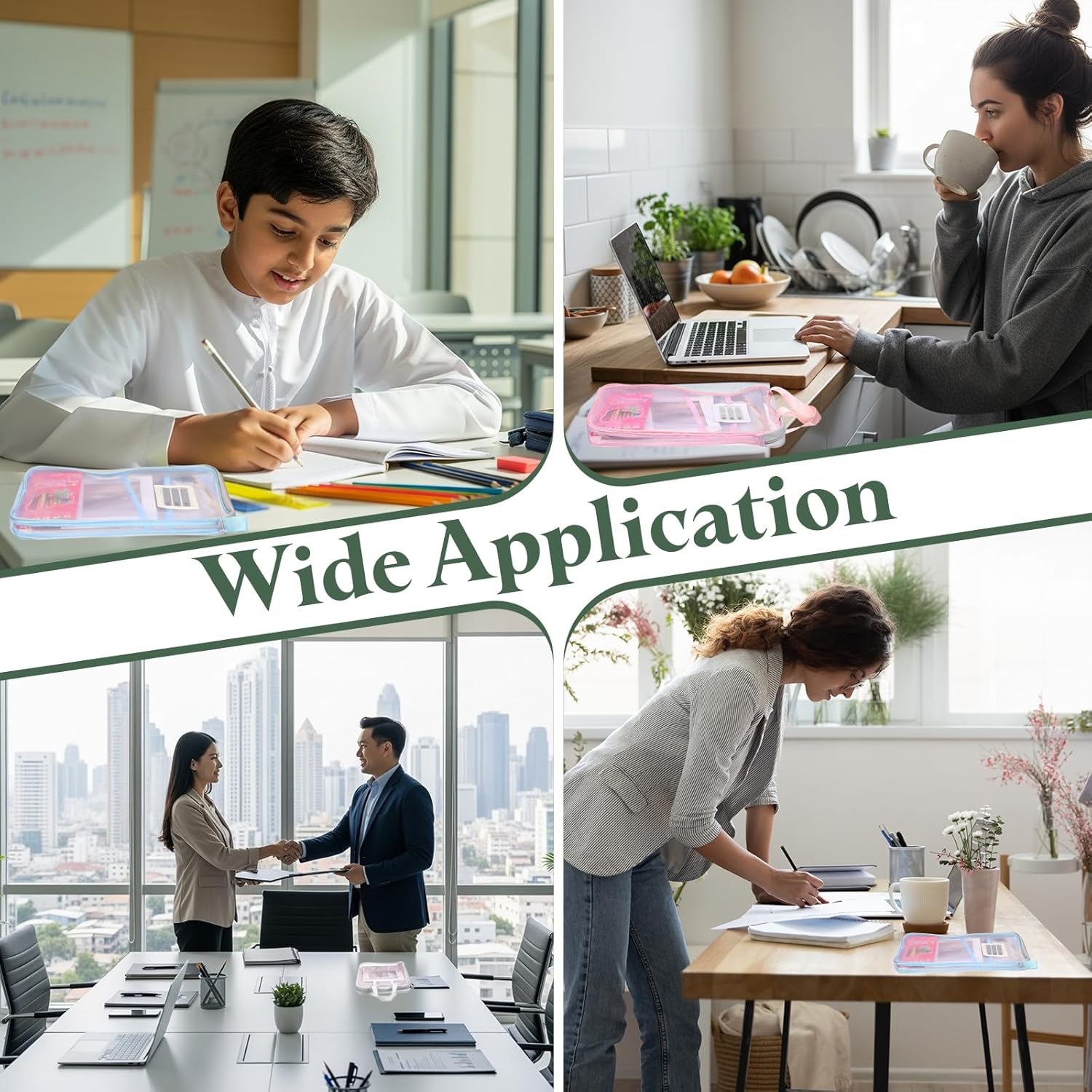 This mesh zipper pouch is perfect for organizing copy, stationery, papers, files, letters, archives, reports, resumes, drafts, and more. It is suitable for various settings, such as offices, educational locations, home storage, and business meetings, also works well as a travel organizer. As a versatile document bag, it helps you keep files, maintain a neat daily life.