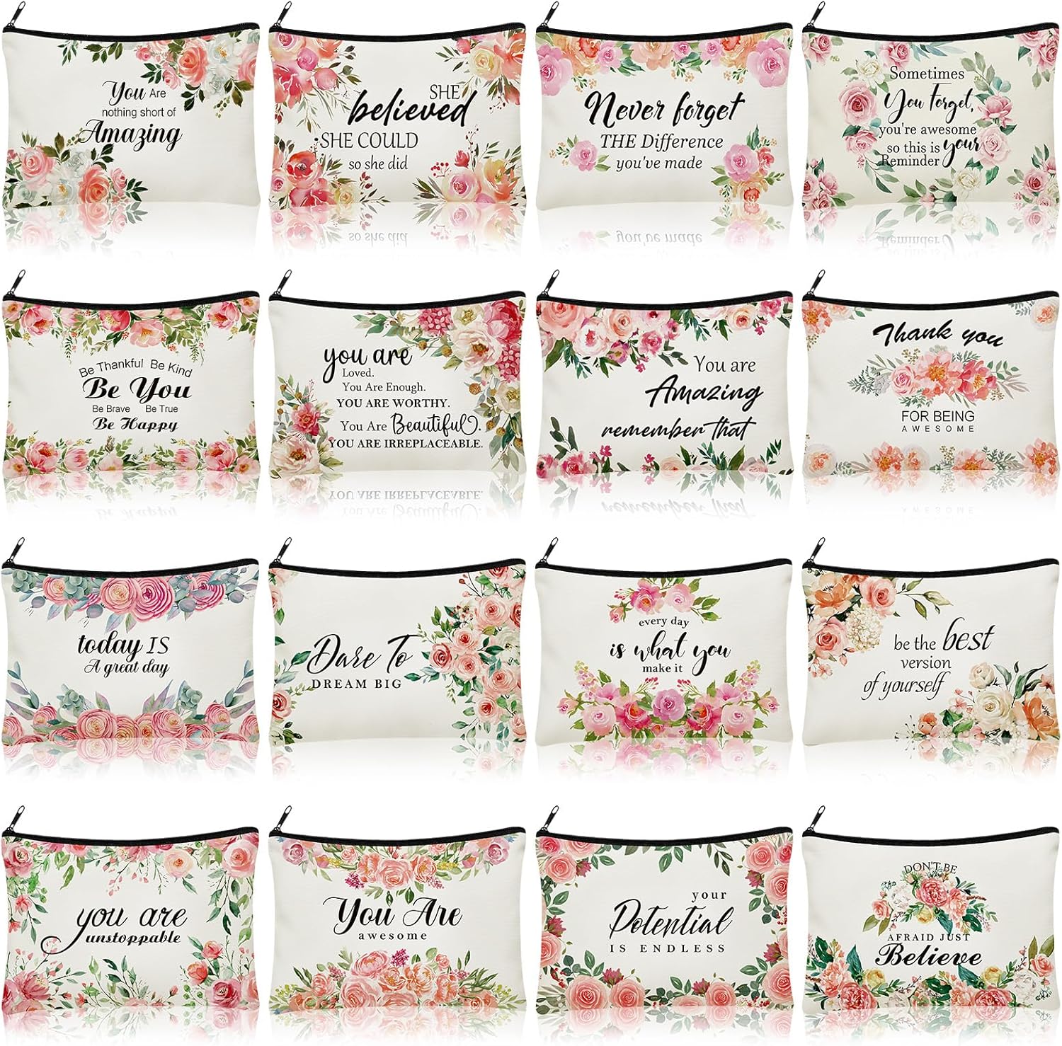 Inspirational Theme Design: the flower makeup bags are designed with many inspirational words, including [Dare to dream big], [you are awesome], [today is a great day] and more, when you see these words, you will feel more faithful, confident and positive