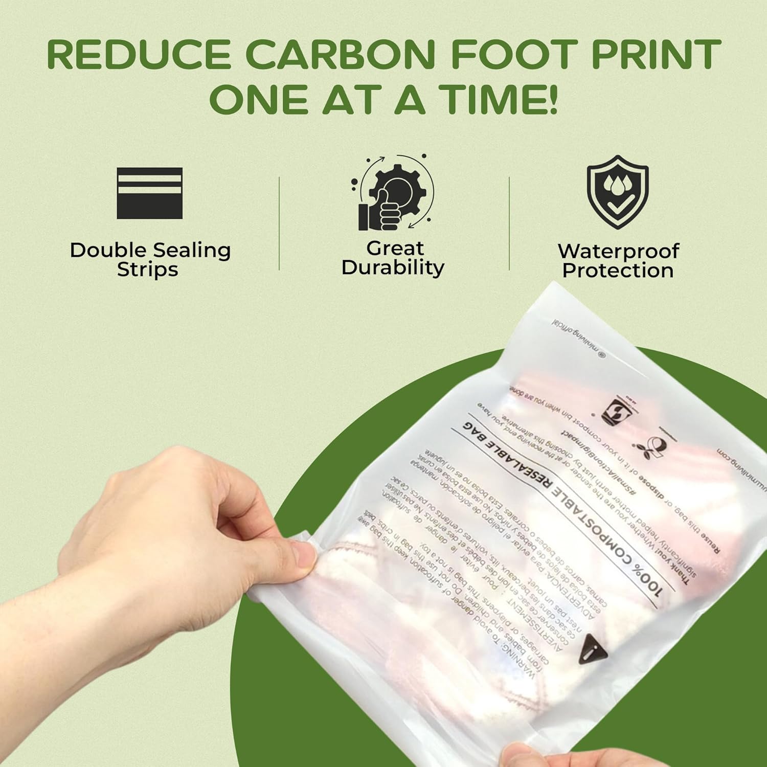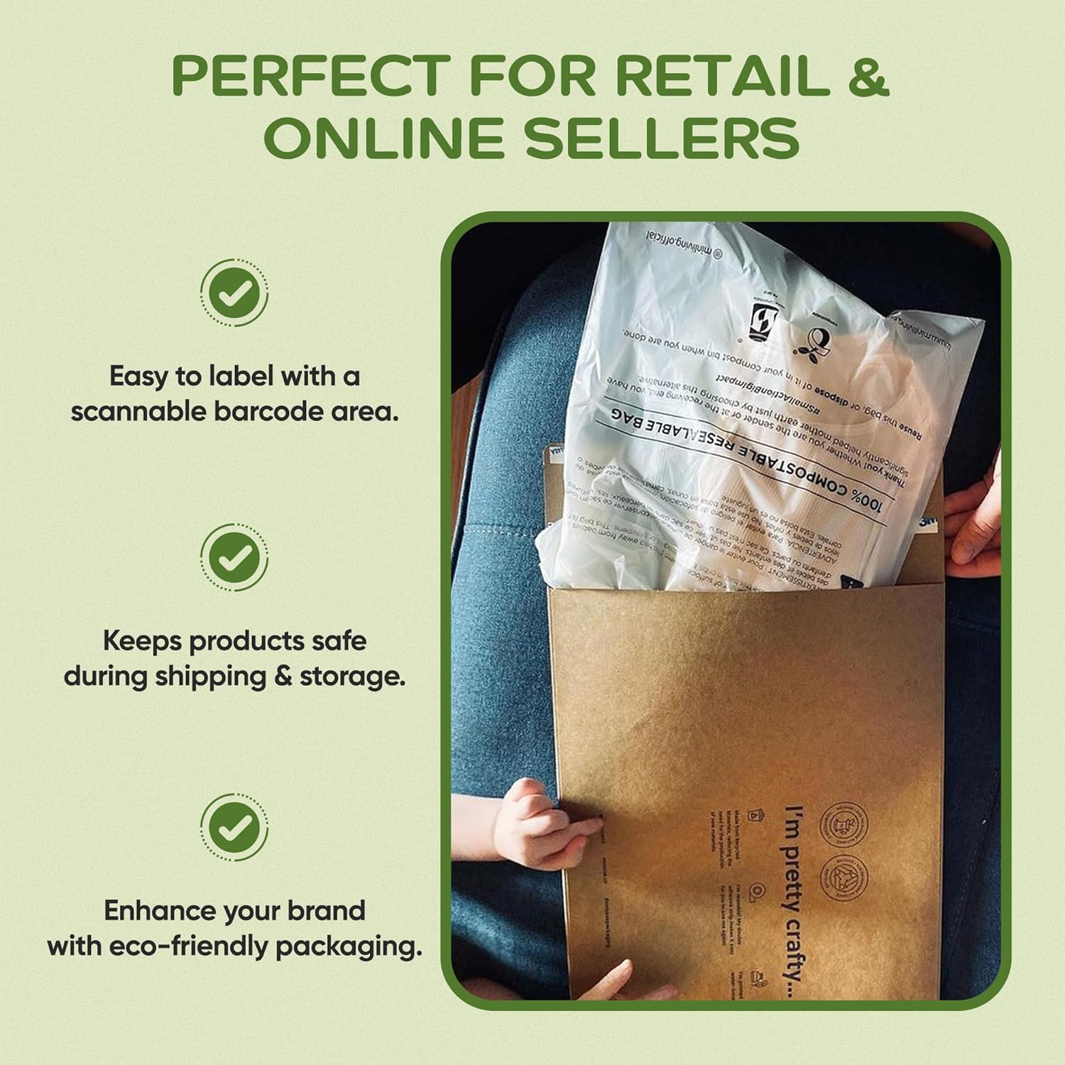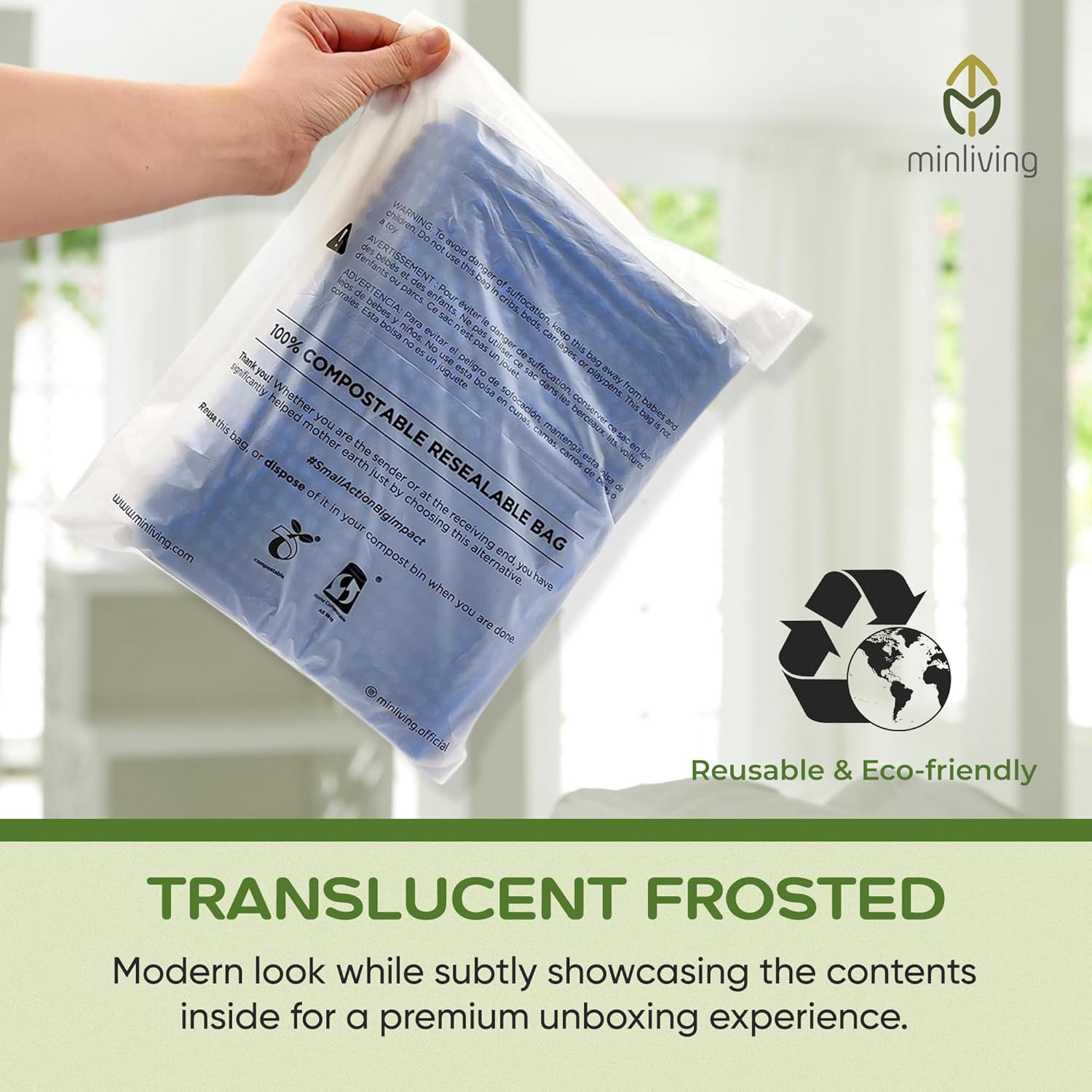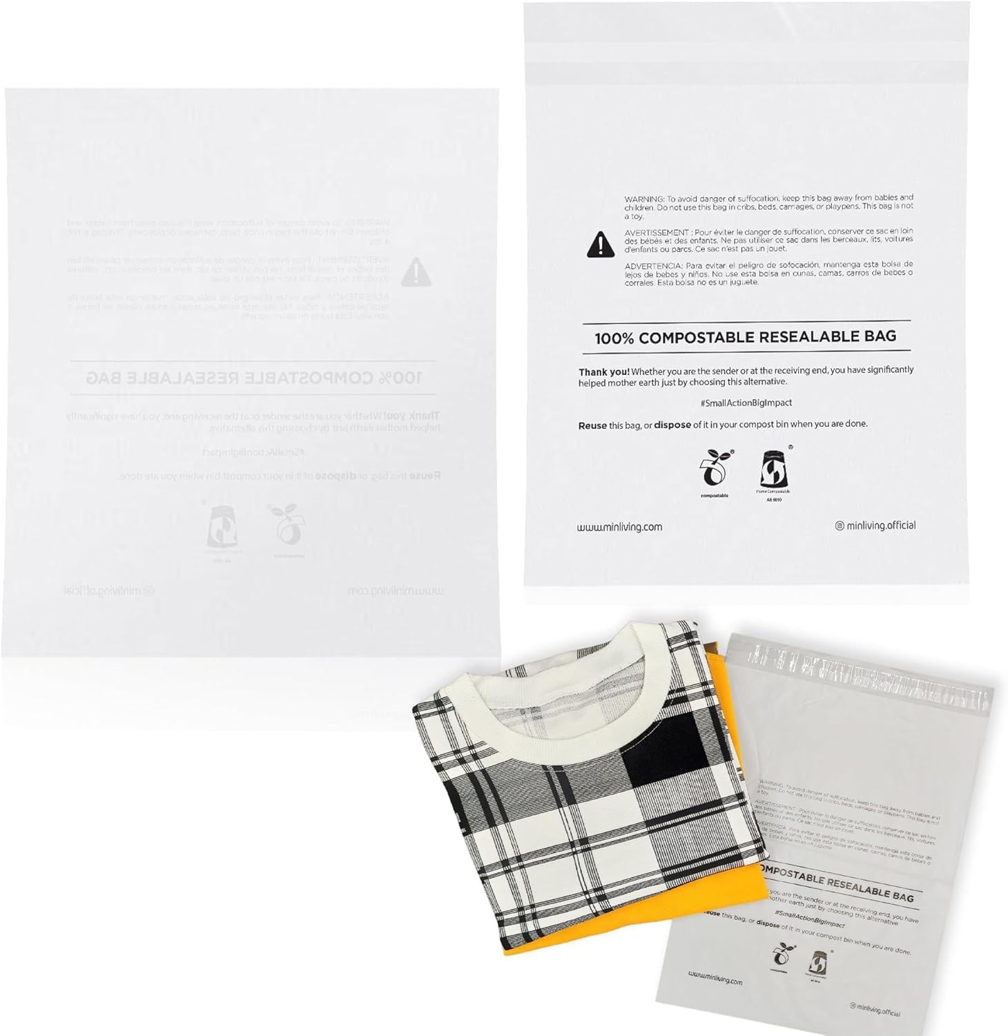 CERTIFIED SUSTAINABLE: Trust in global certifications ASTM 6400 and EN13432 for industrial and home composting. Includes required multilingual suffocation warnings meeting all FBA marketplace requirements.