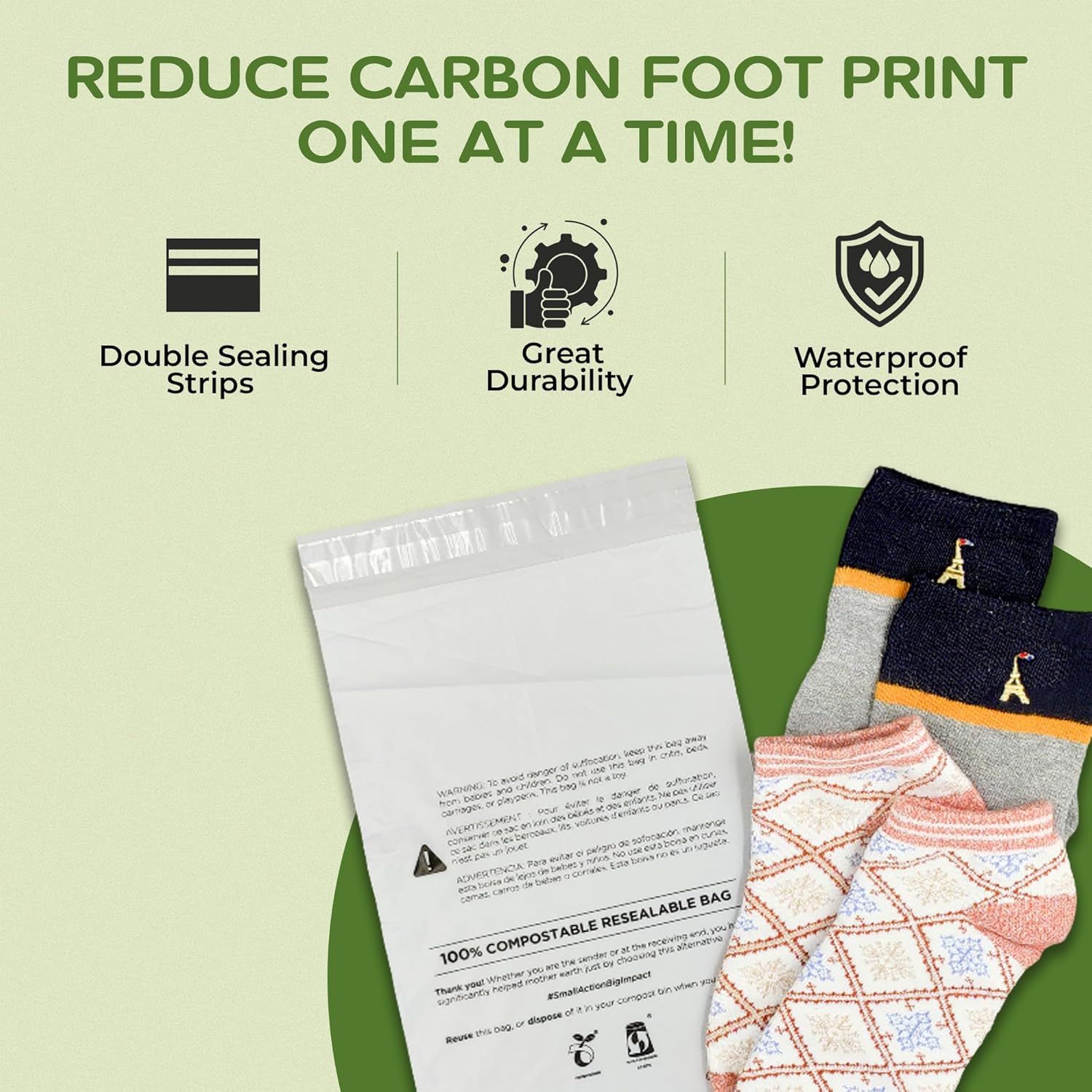 CERTIFIED SUSTAINABLE: Trust in global certifications ASTM 6400 and EN13432 for industrial and home composting. Includes required multilingual suffocation warnings meeting all FBA marketplace requirements.