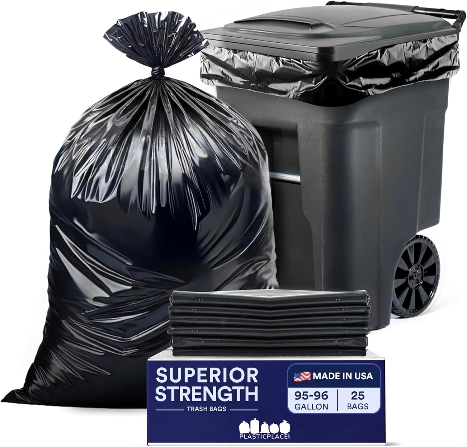 Plasticplace 95-96 gallon Garbage Can Liners │ 3 Mil │ Black Heavy Duty Trash Bags │ 61” x 68”, 25 Count (Pack of 1)