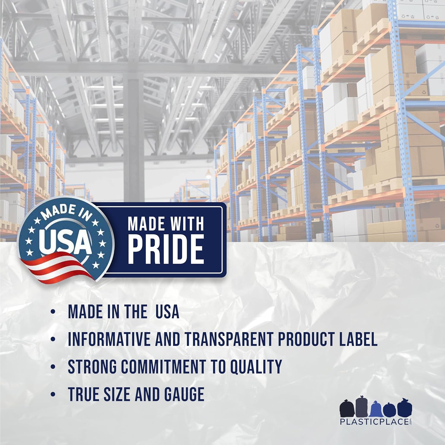 Take control of your waste management with Plasticplace 95-96 Gallon Heavy Duty Trash Bags, expertly designed for durability and reliability. These extra-large trash bags are the perfect solution for managing heavy or bulky garbage in residential, commercial, and industrial settings. Crafted from industrial-strength low-density resins, these black garbage bags are 1.2 mil thick, offering superior resistance to punctures, tears, and splits. Whether you’re tackling yard waste, construction debris, or general household garbage, these bags won’t let you down. Measuring 61” x 68”, these trash bags are perfectly sized for 95-96 gallon rollaway trash cans, drums, and large outdoor bins. With their spacious design, these bags are ideal for handling high volumes of waste. The star-sealed bottom distributes weight evenly, enhancing durability and preventing leaks, even with heavy or wet garbage. This innovative design ensures your trash stays contained, reducing mess and hassle. Each pack contains 50 trash bags neatly organized on rolls with perforations for effortless dispensing. Perfect for busy homeowners, cleaning crews, or facilities that require reliable trash liners. Protect your bins from odors, residue, and grime with these heavy-duty liners. Ideal for outdoor trash cans, these bags maintain a clean and fresh environment while simplifying waste management. Plasticplace products are proudly made in the USA, ensuring you receive the highest quality and performance for your waste management needs.