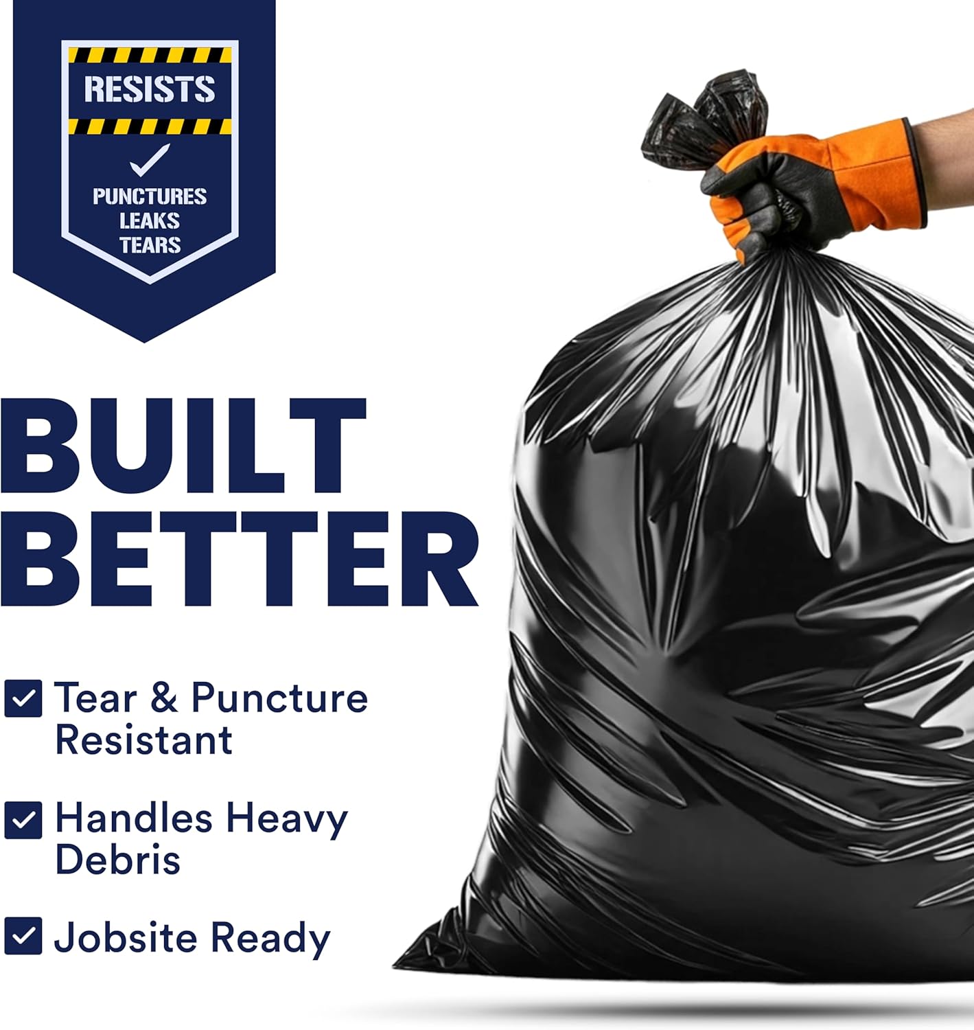 The 40-45 gallon, black contractor bag can hold all your heavy trash with ease. Proudly made in the USA with superior resins.