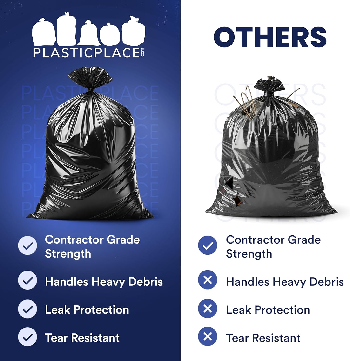 Plasticplace Contractor Trash Bags 40-45 Gallon │ 3.0 Mil │ Black Heavy Duty Garbage Bag │ 40” x 48” (50 Count)