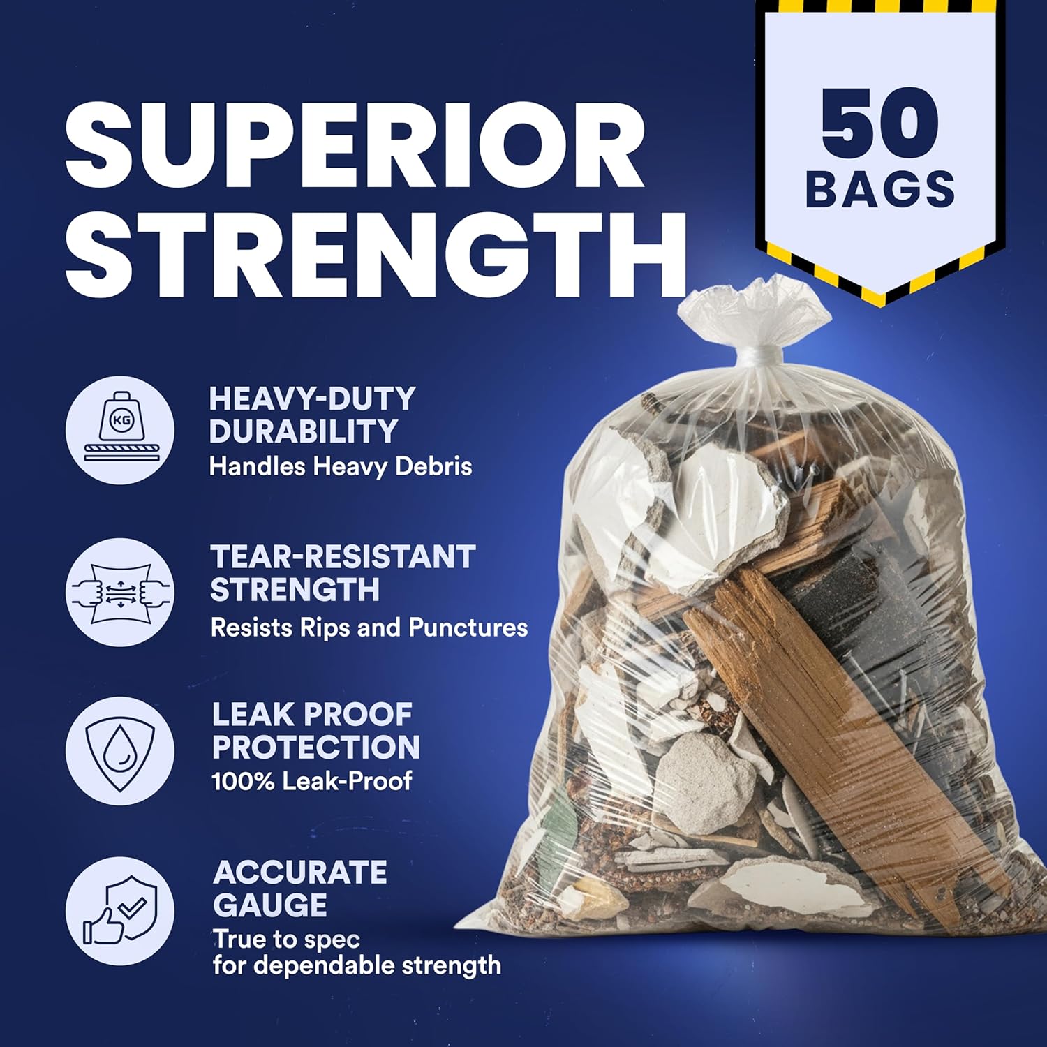 SUPER THICK 3.0 MIL – Thickness of bag is 3.0 Mil, ensuring it’s strong enough to withstand extremely heavy loads like bricks, sheetrock, framing, broken glass and more.