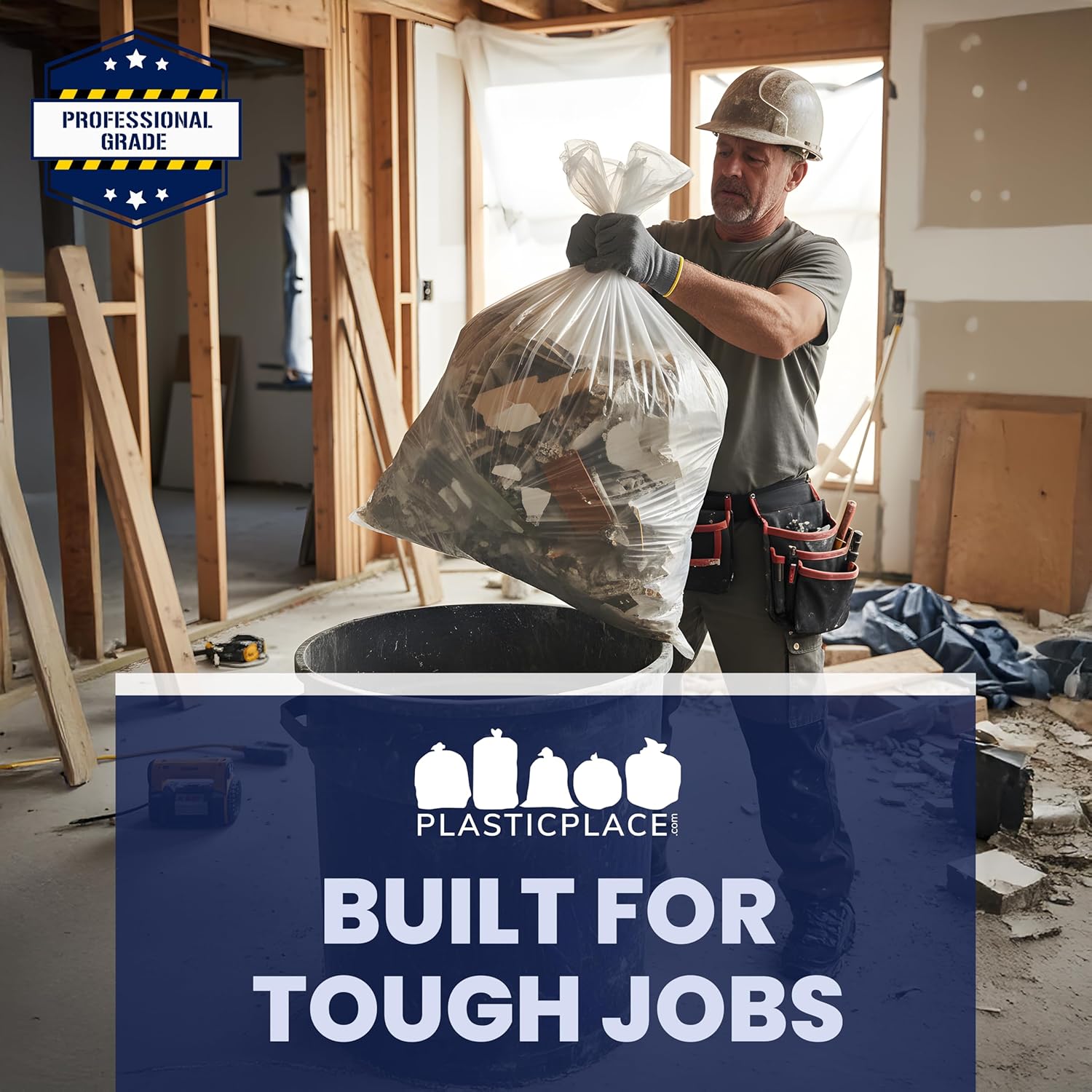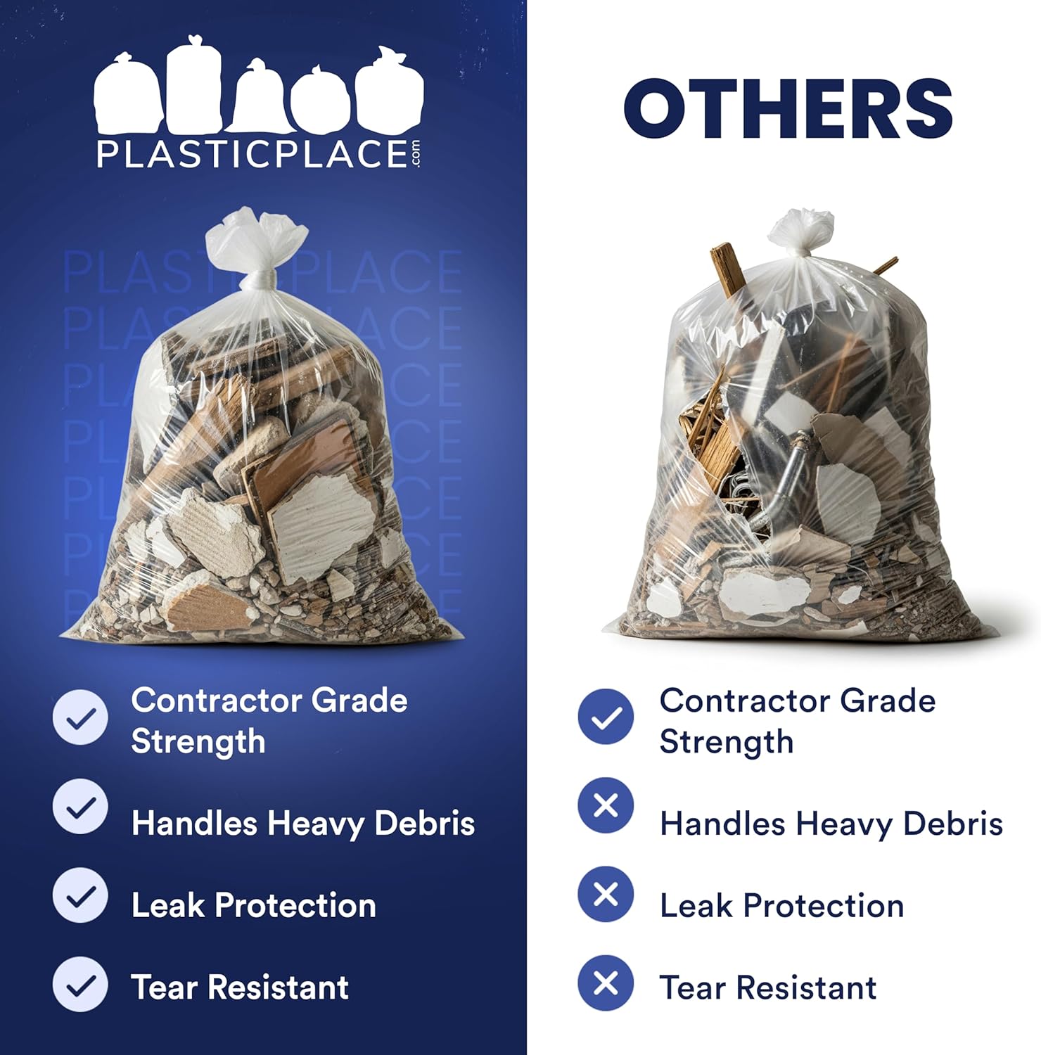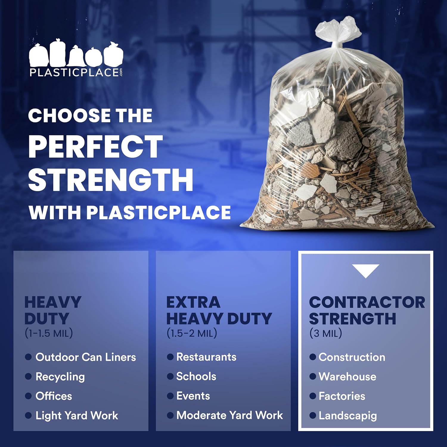 Plasticplace Contractor Trash Bags 42 Gallon │ 3.0 Mil │ Clear Heavy Duty Garbage Bag │ 32.6” x 46.4” (50 Count), Transparent, B001C0SIUG