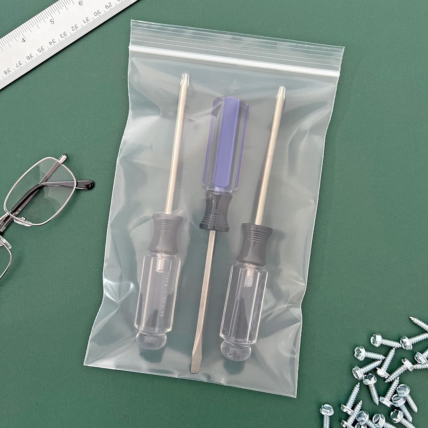 USES: Our heavy-duty 4 mil zipper bags are extremely versatile, perfect for organizing and protecting bulky or sharp items such as hardware, tools, or machinery parts. Ideal for securely transporting heavy or delicate items, they provide extra protection against punctures and tears for safe storage and transport. With a resealable design, they’re suitable for repeated use in DIY projects or industrial applications, offering reliability and peace of mind.