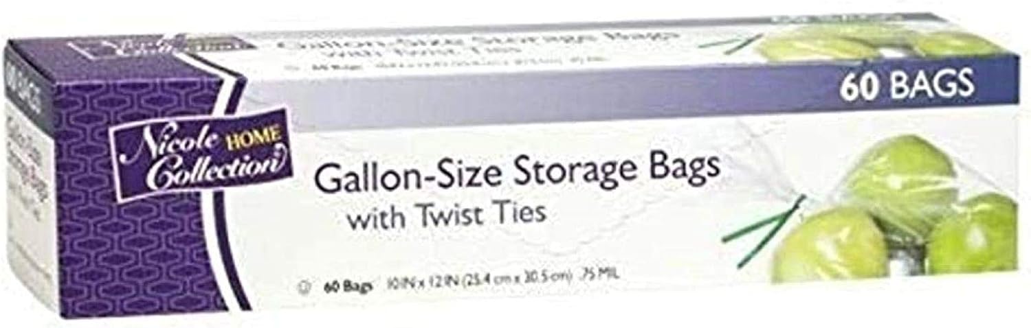 Nicole Home Collection Gallon Size Food Storage Bags with Ties, 60 Count. Designed for all occasions, banquets, dinners, parties, upscale catering, and home. Disposable Products.