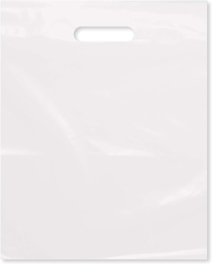 Prime Line Packaging White Plastic Bags, Shopping Bags with Die Cut Handles for Restaurants, Food To Go, Bread, Take Out Goodies, Small Business, Bulk, 13x10x15, 100 Pack