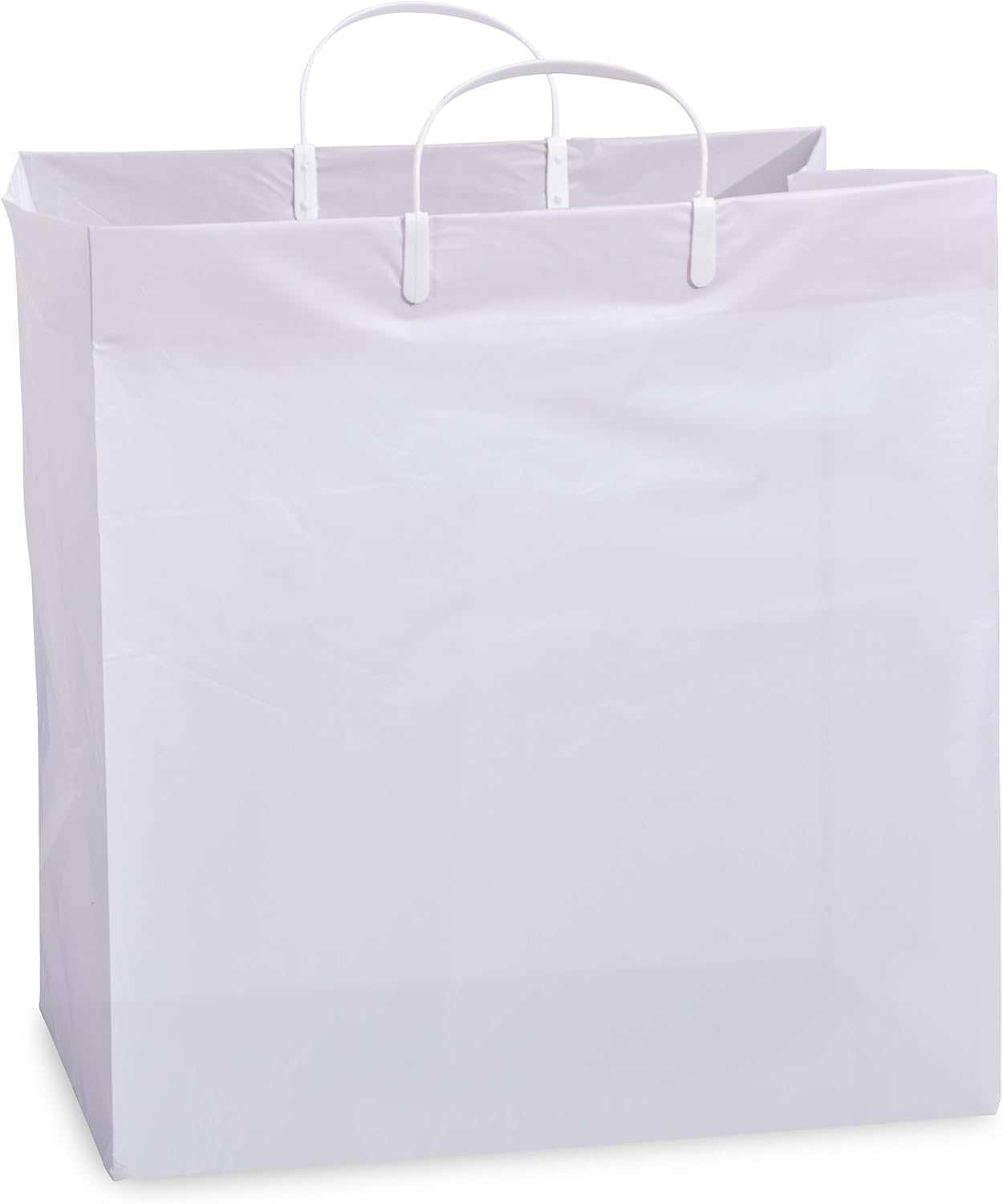 Prime Line Packaging White Plastic Bags, Shopping Gift Bags with Handles for Small Business, Food Service, Take Out, Delivery, Retail Bulk, 14x10x14.75, 50 Pack