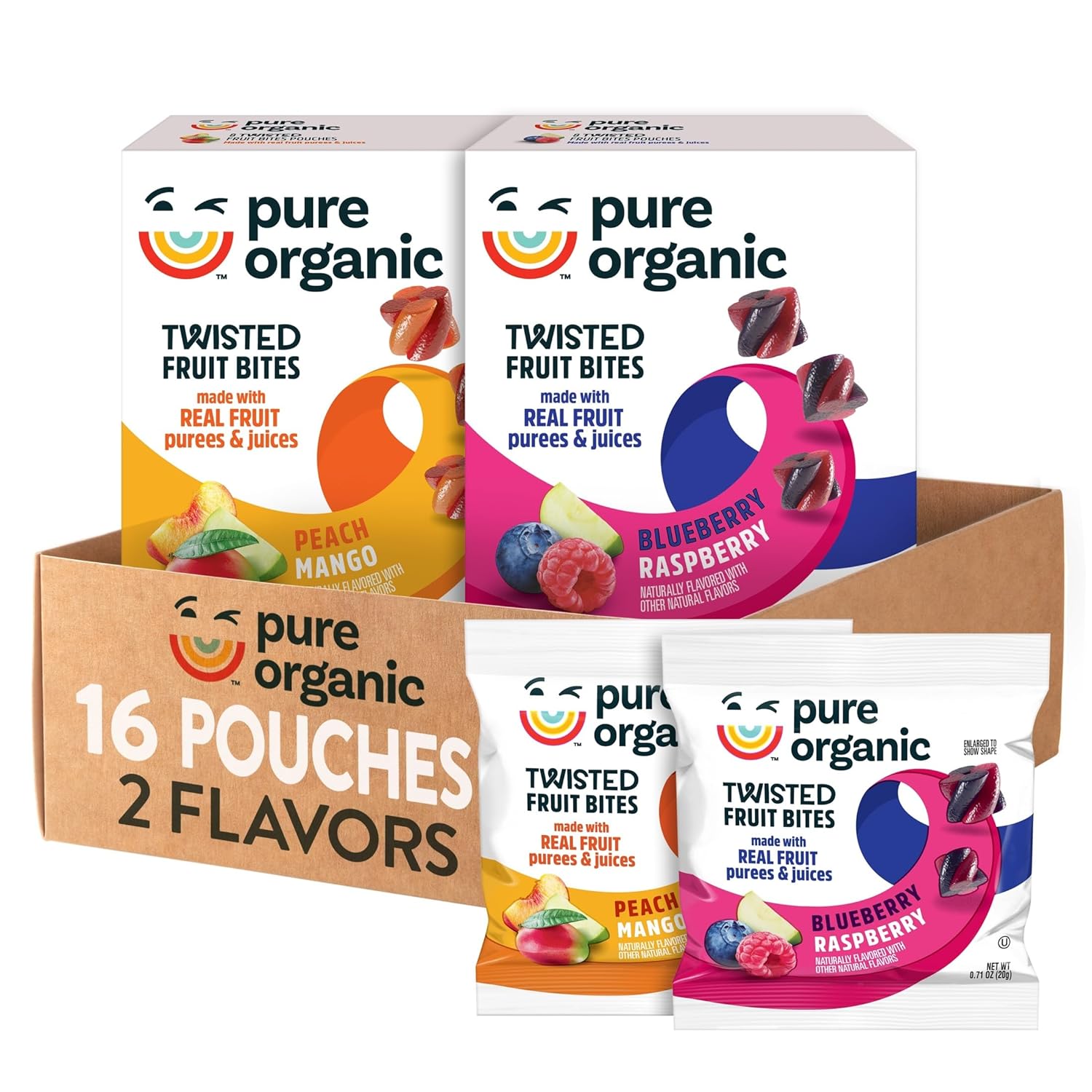 Pure Organic Twisted Fruit Bites, Kids Snacks, Fruit Snacks, Variety Pack (16 Pouches)