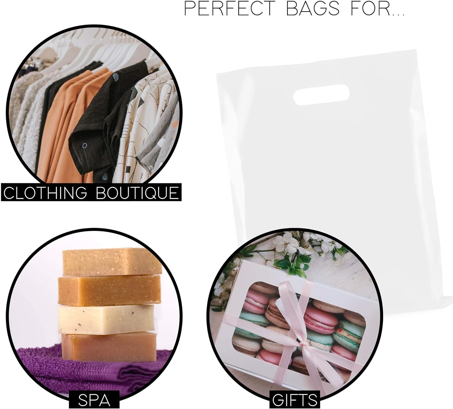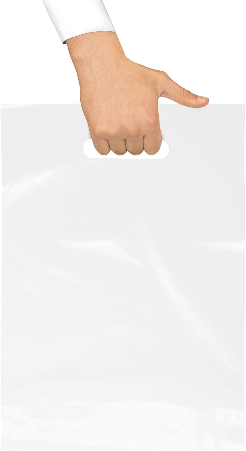 HIGH QUALITY: Our thick merchandise bags are made with sturdy and durable frosted plastic that is 2.5 mil thick.