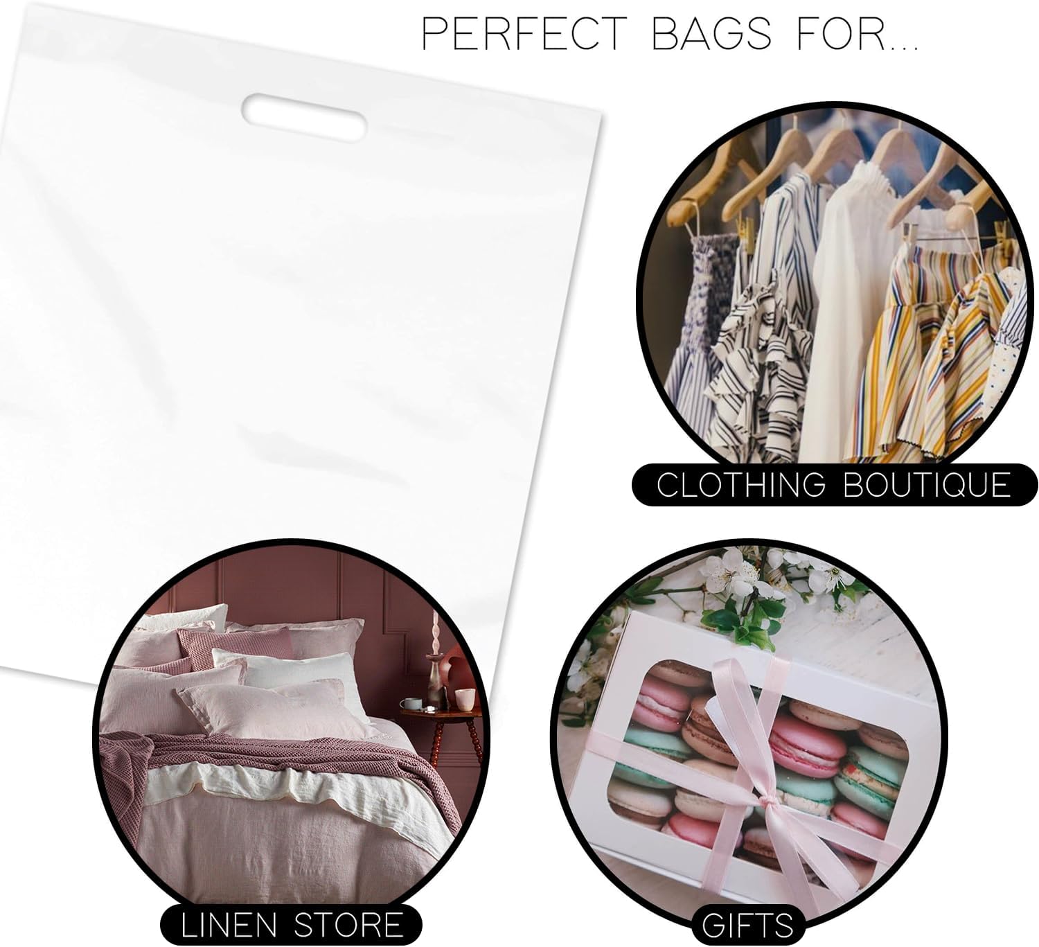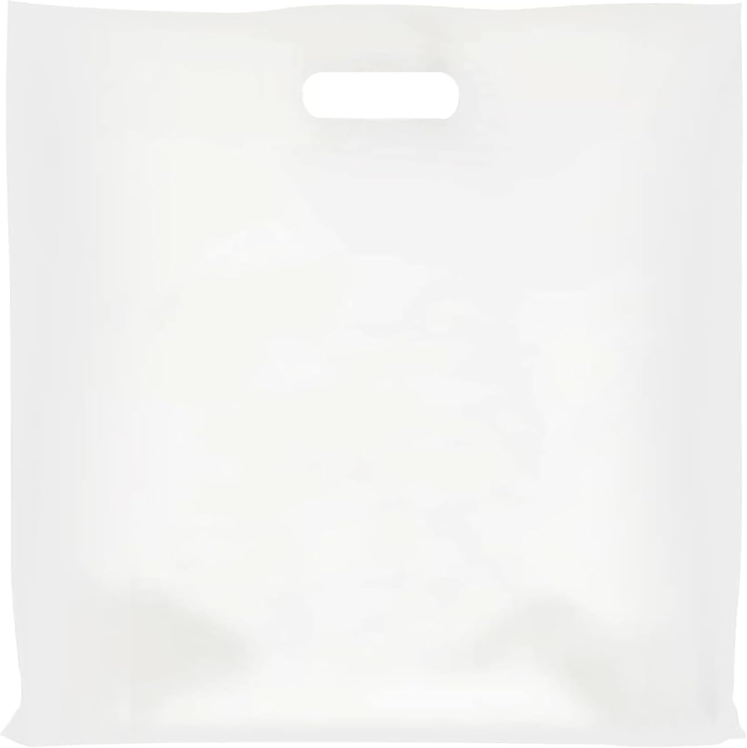 Purple Q Crafts Large Plastic Bag with Die Cut Handle Bag 18″x18″ White Plastic Merchandise Bags 50 Pack for Retail, Gifts, Trade Show and More