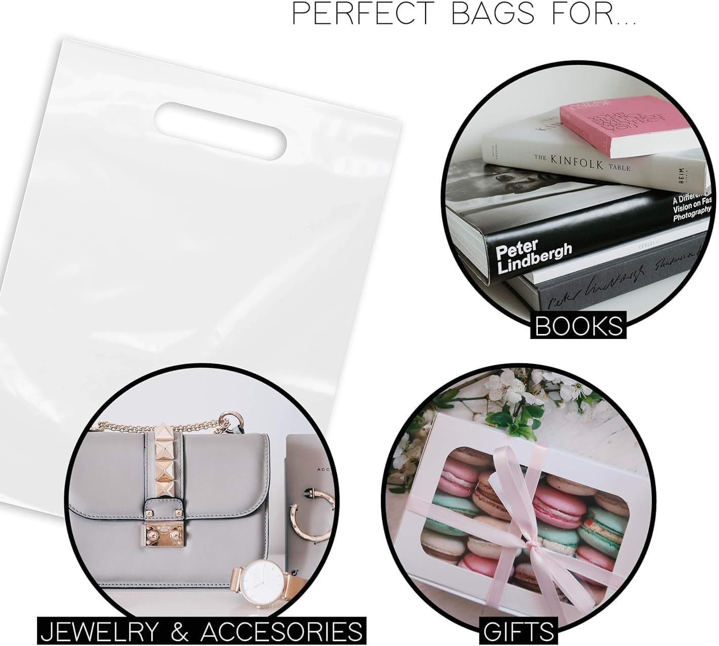 Purple Q Crafts Plastic Bag With Die Cut Handle 9″ x 12″ White Merchandise Bags 100 Pack for Retail, Gifts and Shows