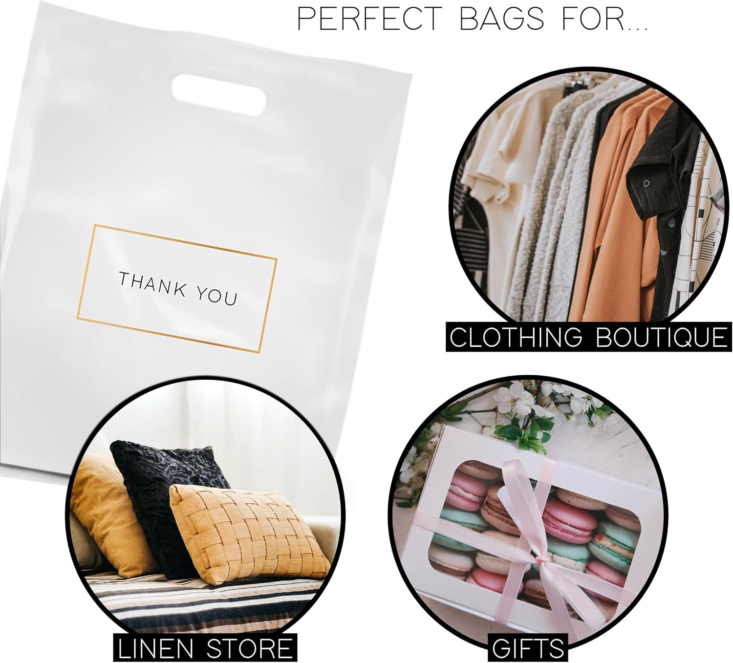 HIGH QUALITY: Our thick retail bags are made with sturdy and durable plastic that is 1.75 mil thick.