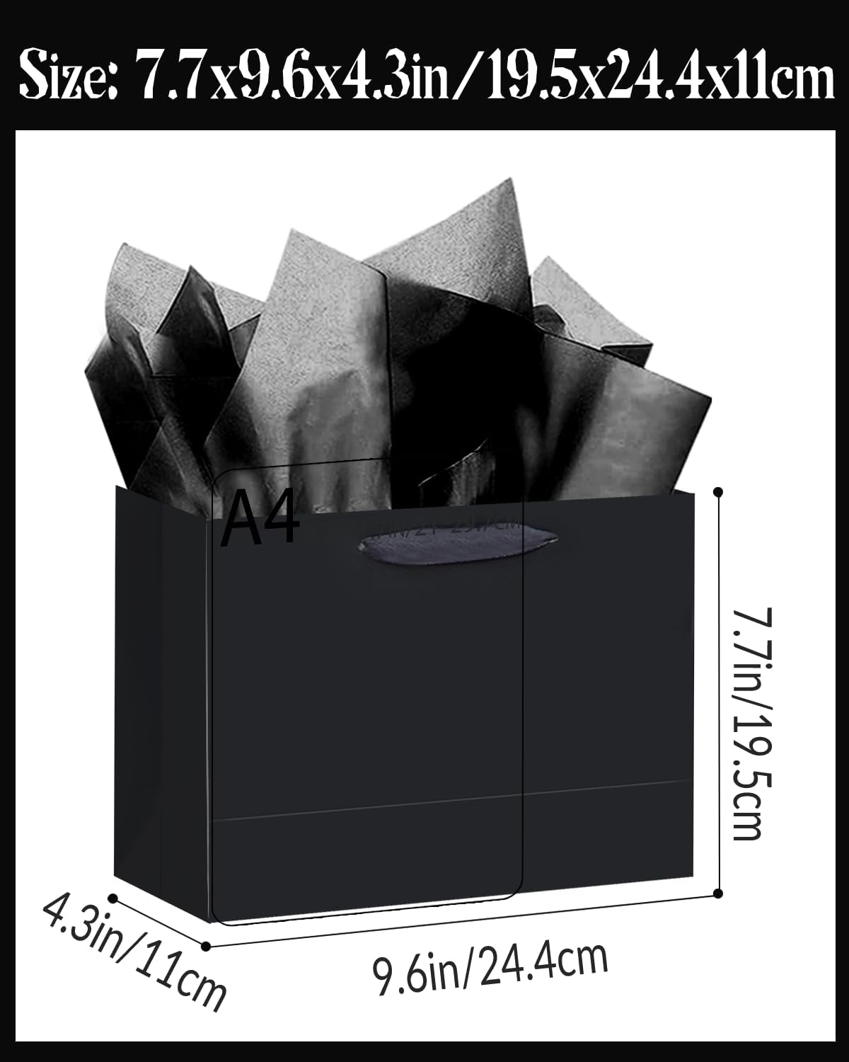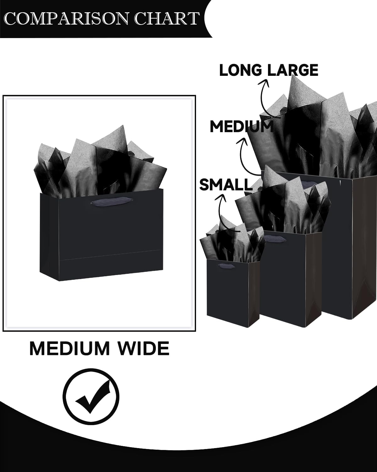 Size-Color: Black / 6.3″x4.7″x2.4″ / 5Pcs Bags / 10Pcs Tissue Paper-9.8″x13.8″