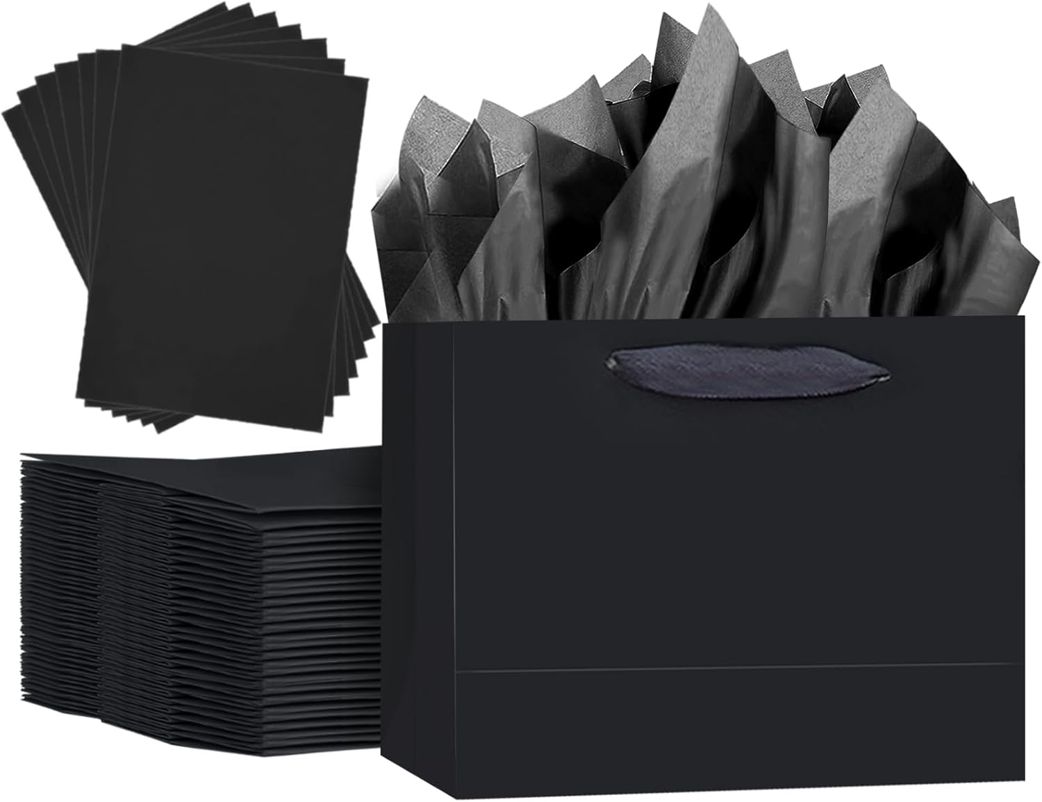 qiqee 5PCS Black Gift Bags with Ribbon Handles 9.6″x7.9″x4.3″ Medium Size Gift Bags (10PCS Tissue Paper included, Medium Wide)
