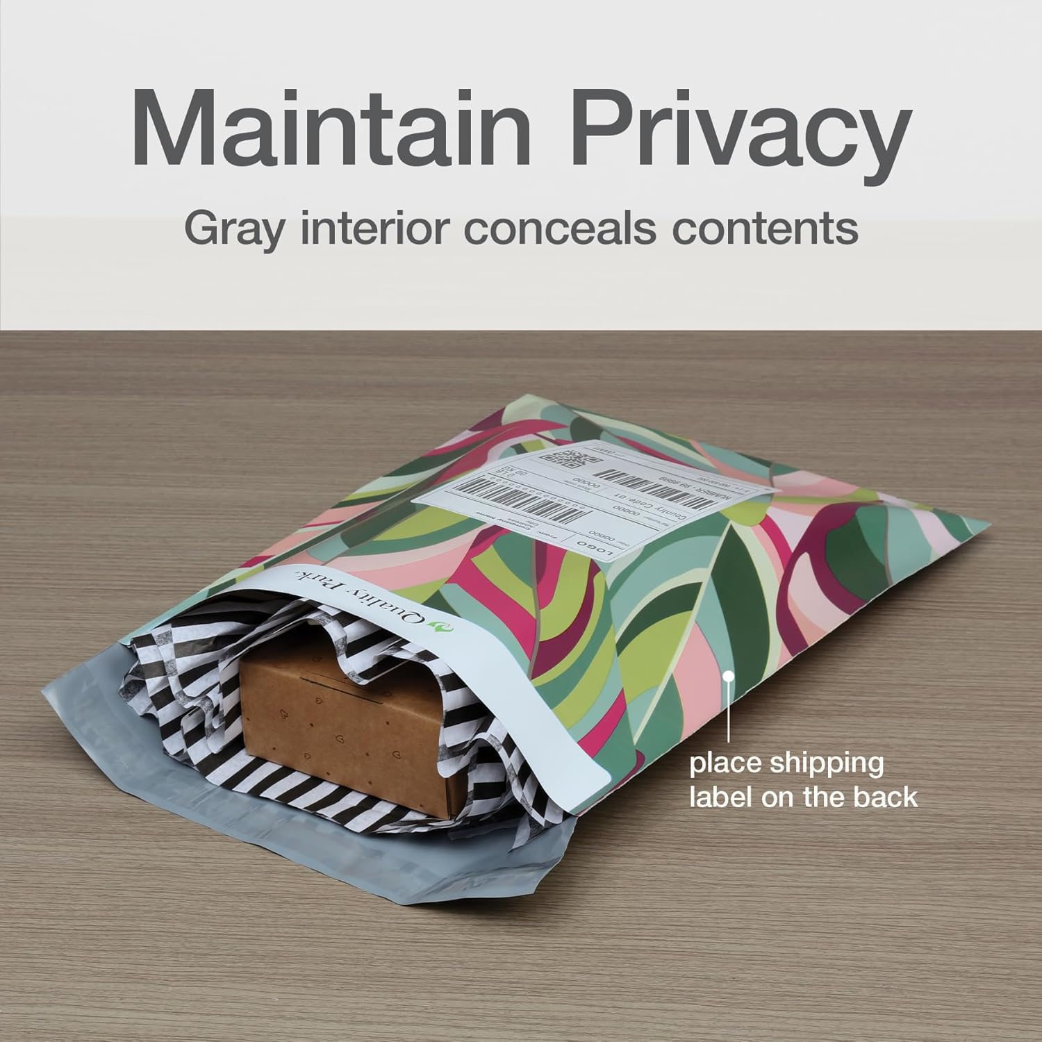 Quality Park Thank You Poly Mailers deliver beautiful customer service straight to their door; get 100 10 x13 inch leaf-printed poly envelopes; puncture, tear & moisture resistant and self-sealing