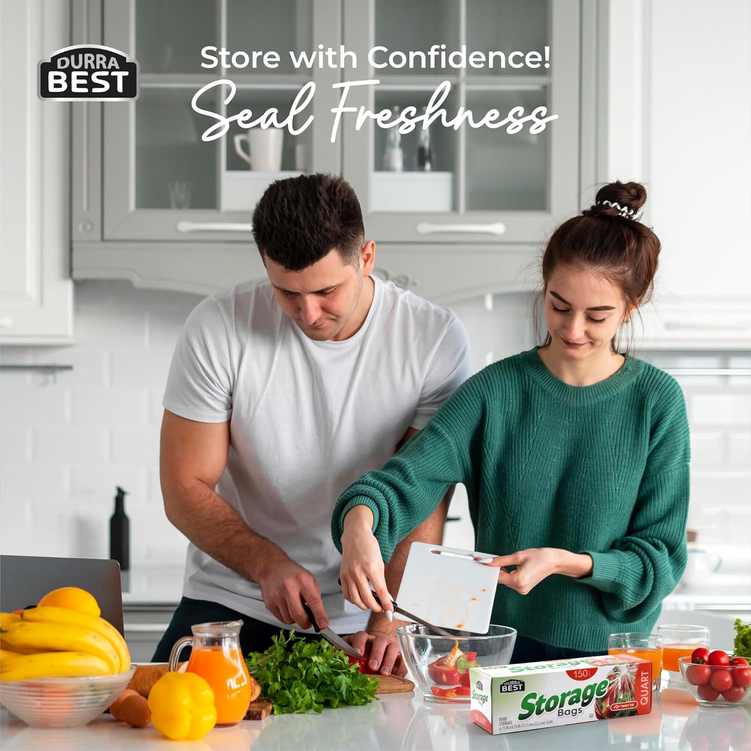 Seal, store, and stay organized — effortlessly. From sandwiches to snacks, baked goods to travel items, DURRA BEST Quart-Size Food Storage Bags offer everyday convenience and trusted durability. Whether you’re storing food, prepping for a party, or packing up small essentials, these clear plastic bags get the job done. ✔ Leak-Resistant & Durable Each bag is made from premium, food-safe plastic that keeps contents protected and fresh — no rips, no mess. ✔ Includes Twist Ties for Secure Sealing Each bag comes with a twist tie for simple, secure closure. Easy to use, no clips or zippers needed. ✔ Versatile for Food & More Use them for bread, cookies, fruits, nuts, candies — or even for organizing small toys, tools, or travel items. ✔ Bulk Pack for Everyday Needs Get 150 quart-size bags in one pack — perfect for home kitchens, offices, events, and daily meal prep. DURRA BEST – Smart, simple solutions for everyday life.