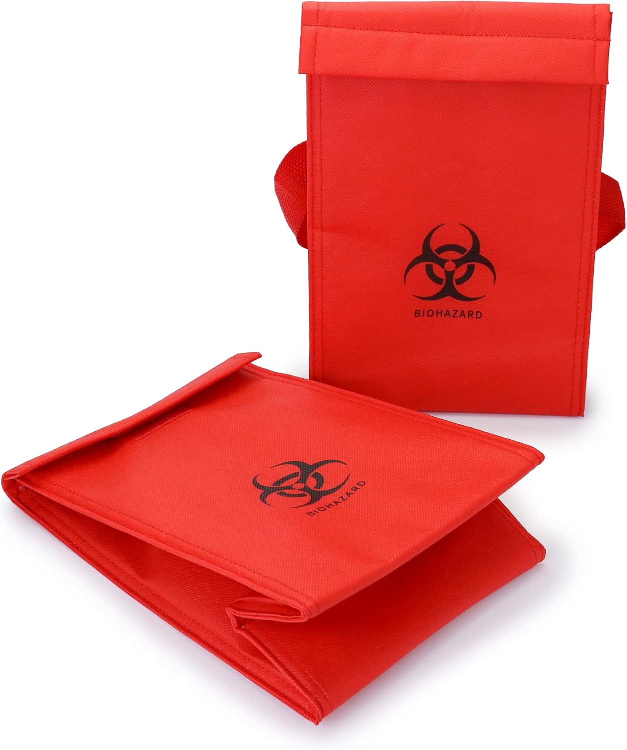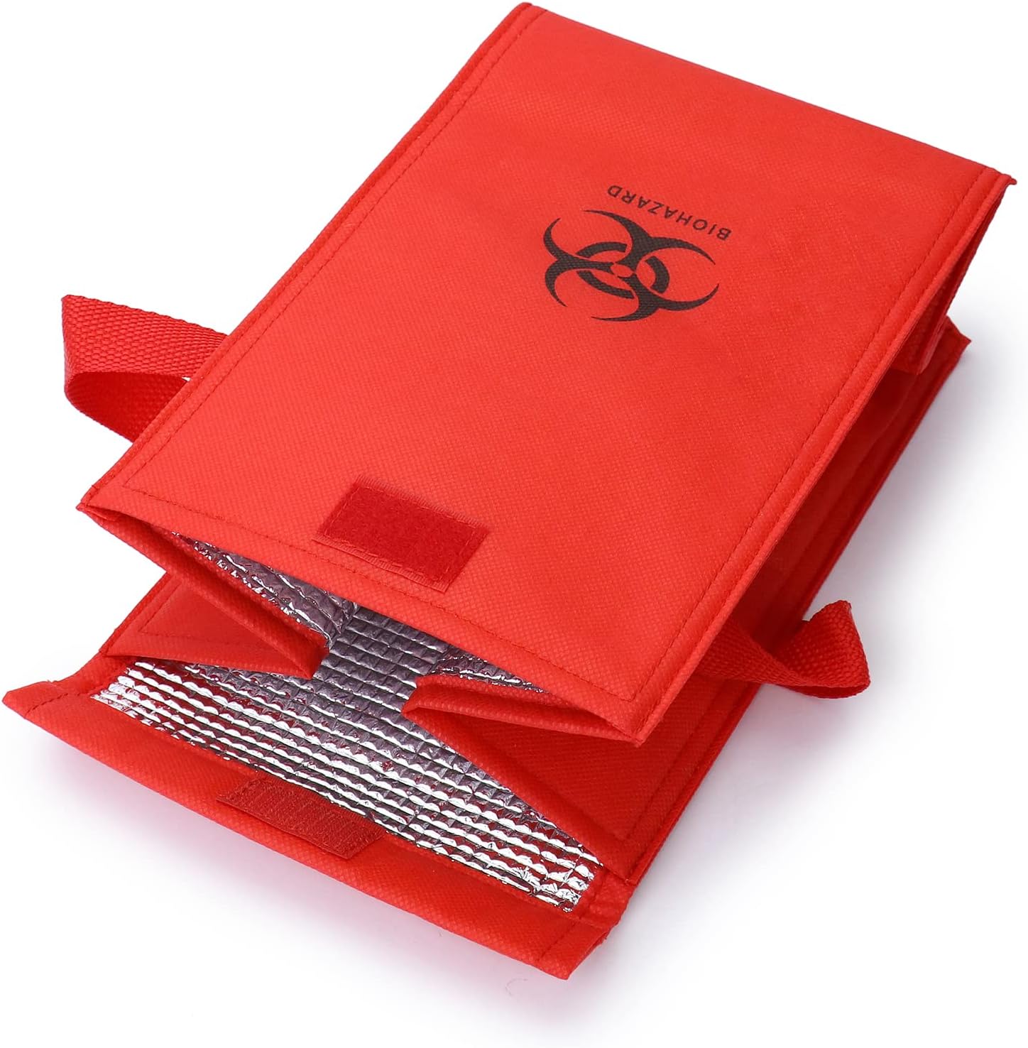 QWORK Medical Specimen Transport Bag, 2 Pack Biohazard Cooler Bag, 6.75″ x 10″ x 5.75″, Red