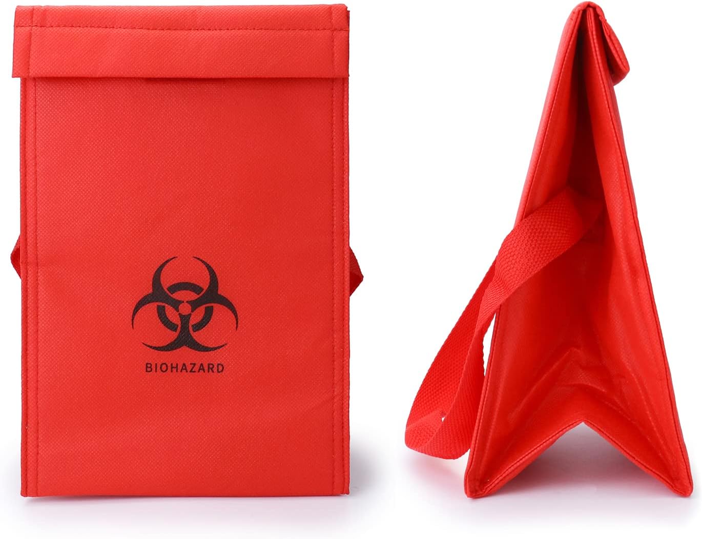 QWORK Medical Specimen Transport Bag, 4 Pack, Bio Transport, 6.75″ x 10″ x 5.75″, Red