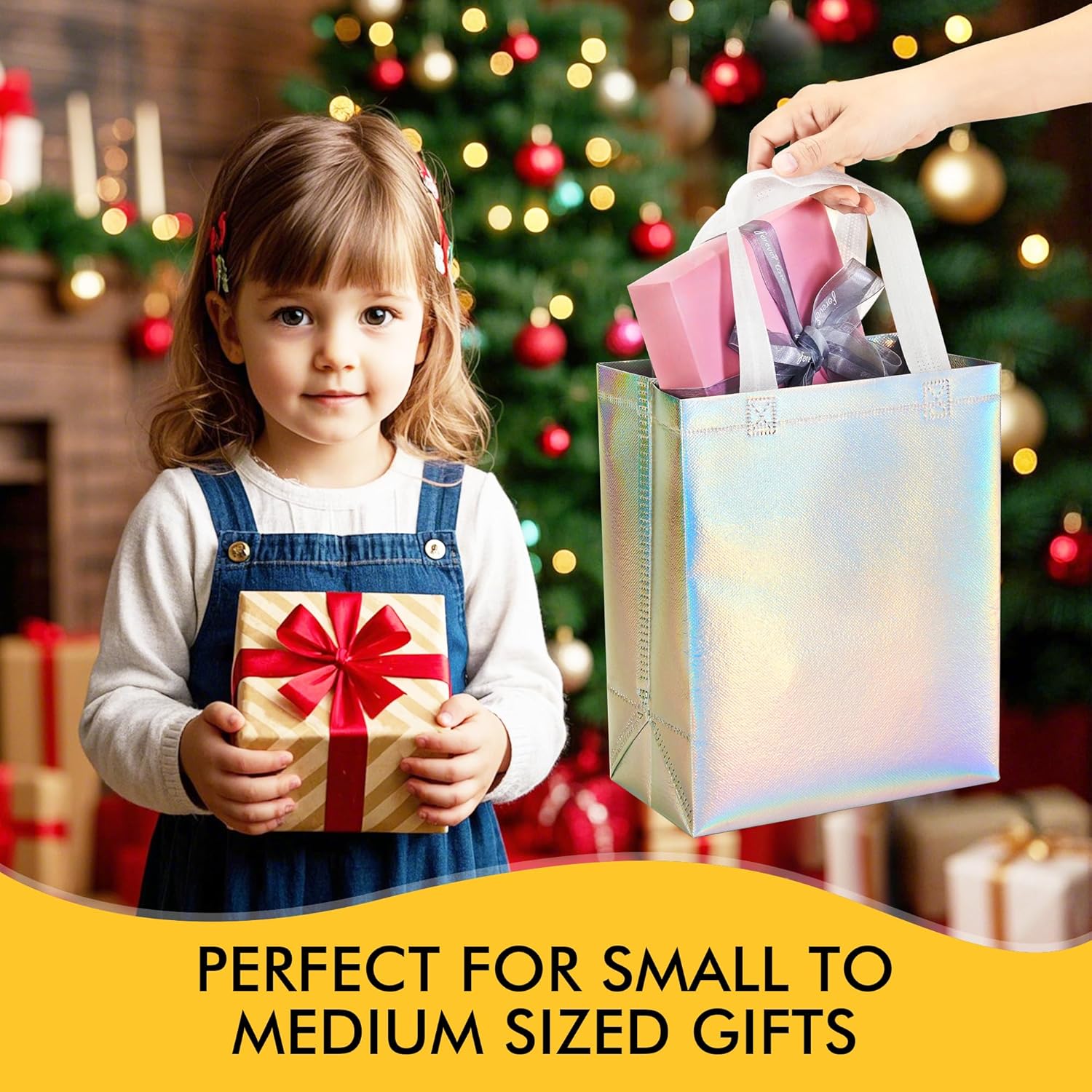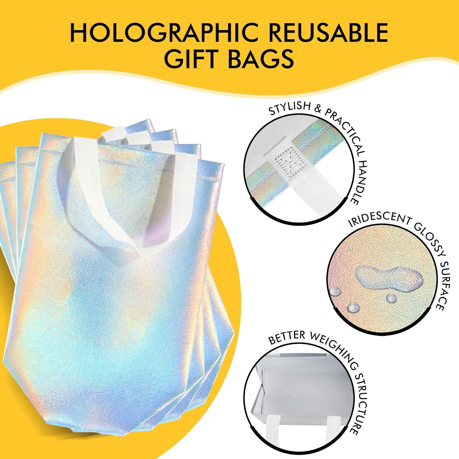 Elegant and Versatile: Our iridescent gift bags feature a stunning holographic surface that reflects dazzling rainbow-like colors under any lighting, making them perfect for birthdays, weddings, parties, and more