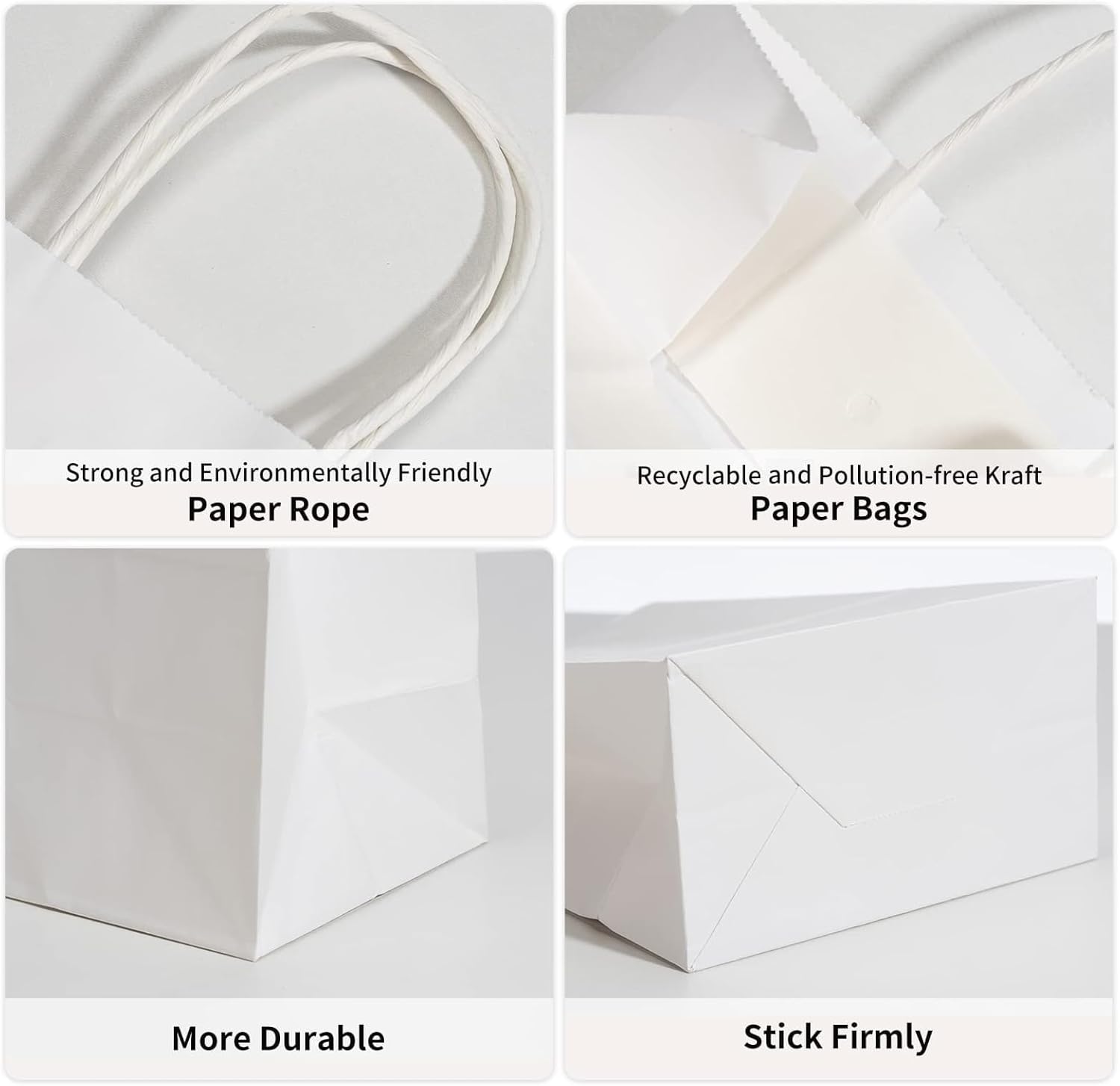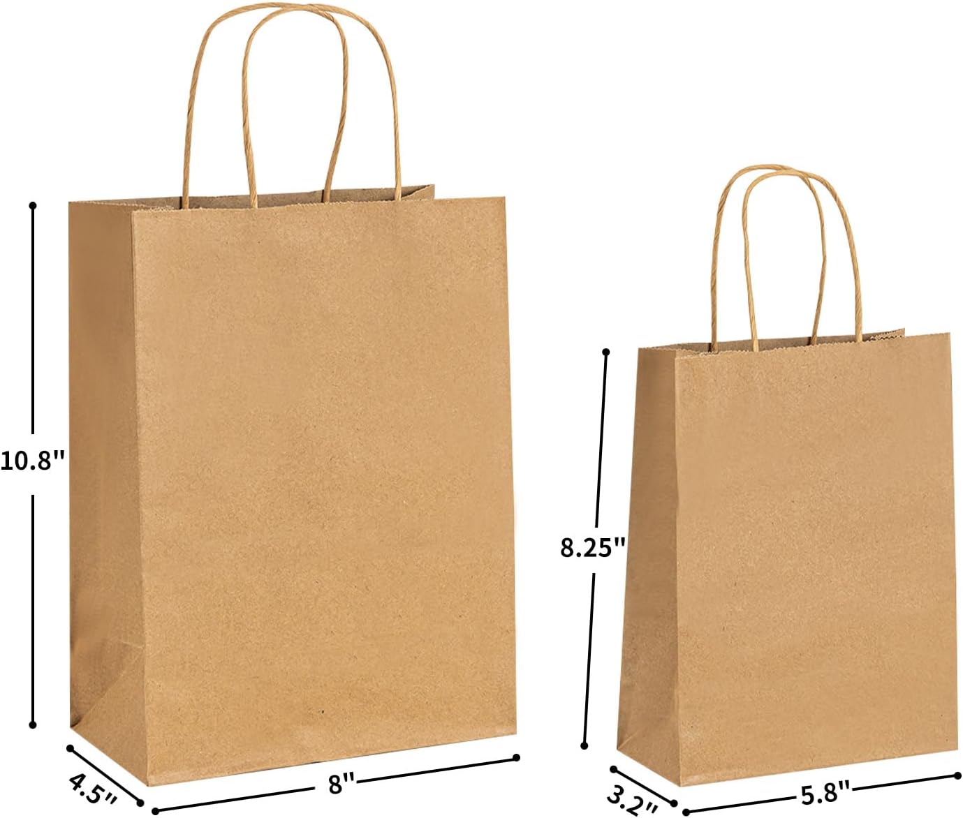 Eco-friendly Paper Bags: Made of recycled, biodegradable 110g basis weight kraft paper, these brown white gift bags are both environmentally friendly and sturdy enough to hold up to 10 lbs.