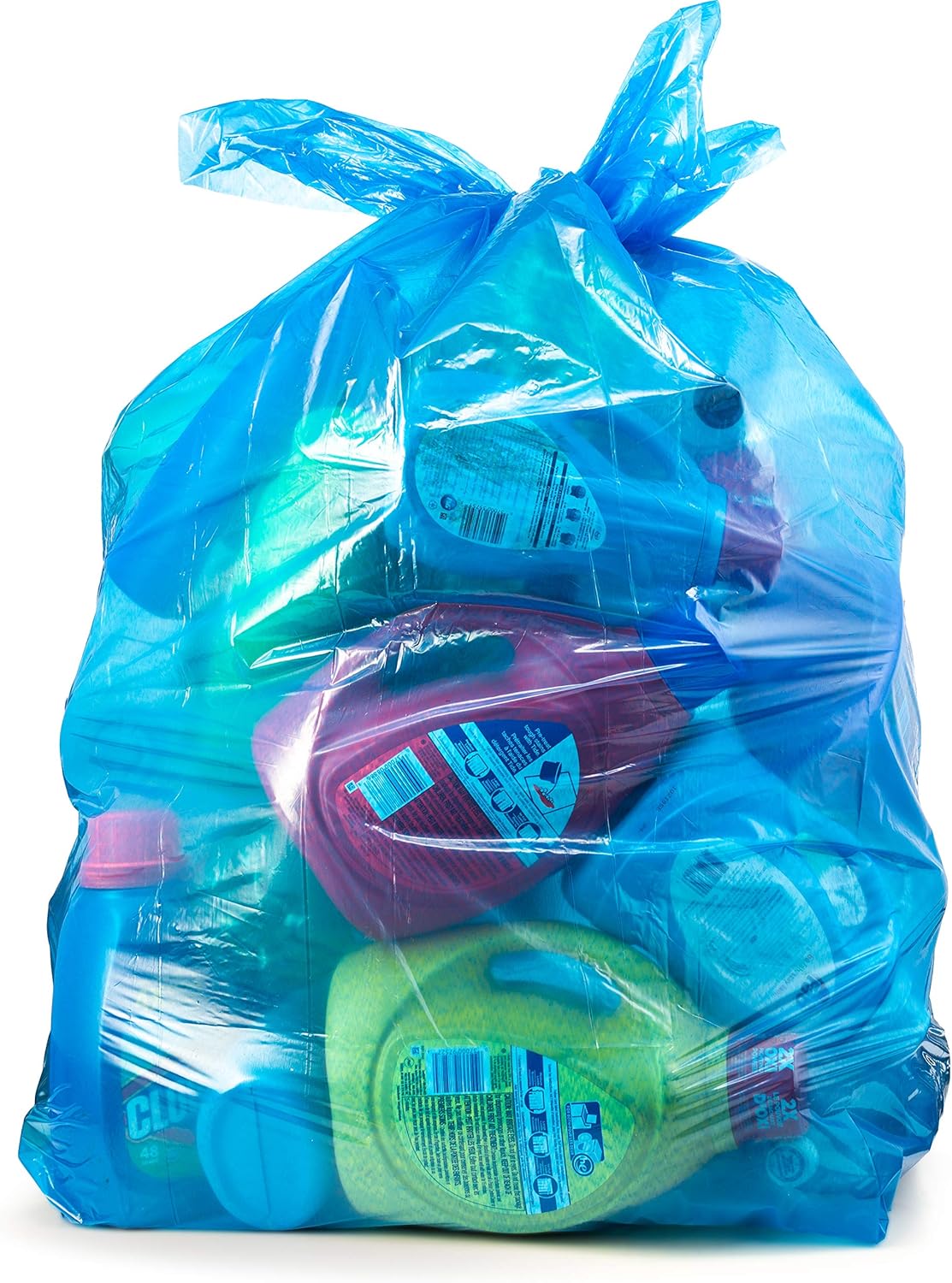 The thickness of these Blue Recycling garbage bags makes them nearly tear-proof.