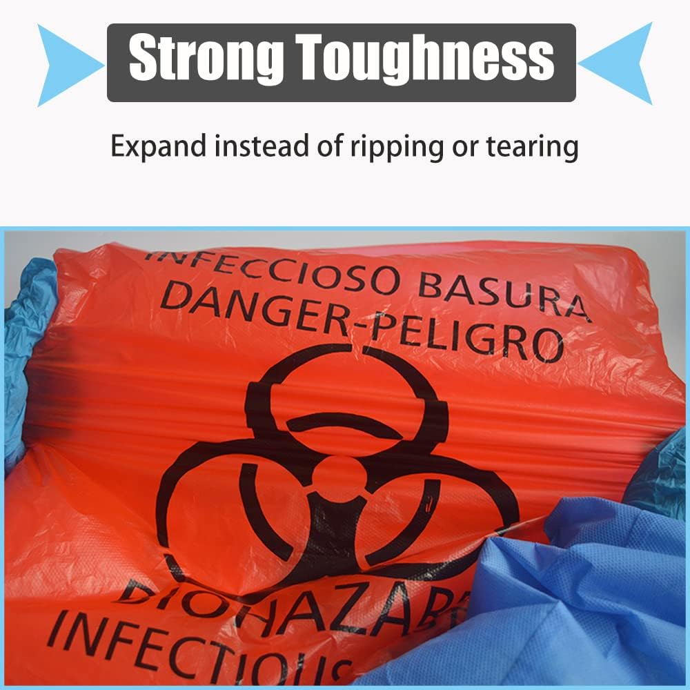 Medical Grade Bags:Our Durable, Strong, No Leaks safety waste bags with biohazard warnings are a great choice for any medical setting,and our red trash bags are compatible with the standard clinic and medical waste containers found in labs and medical clinics
