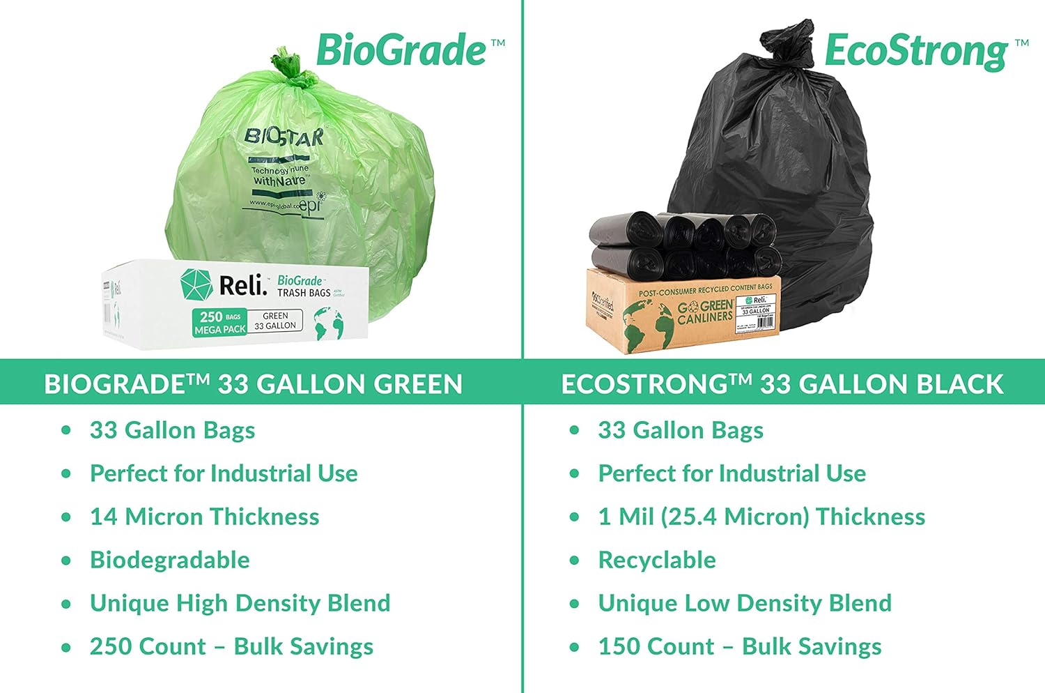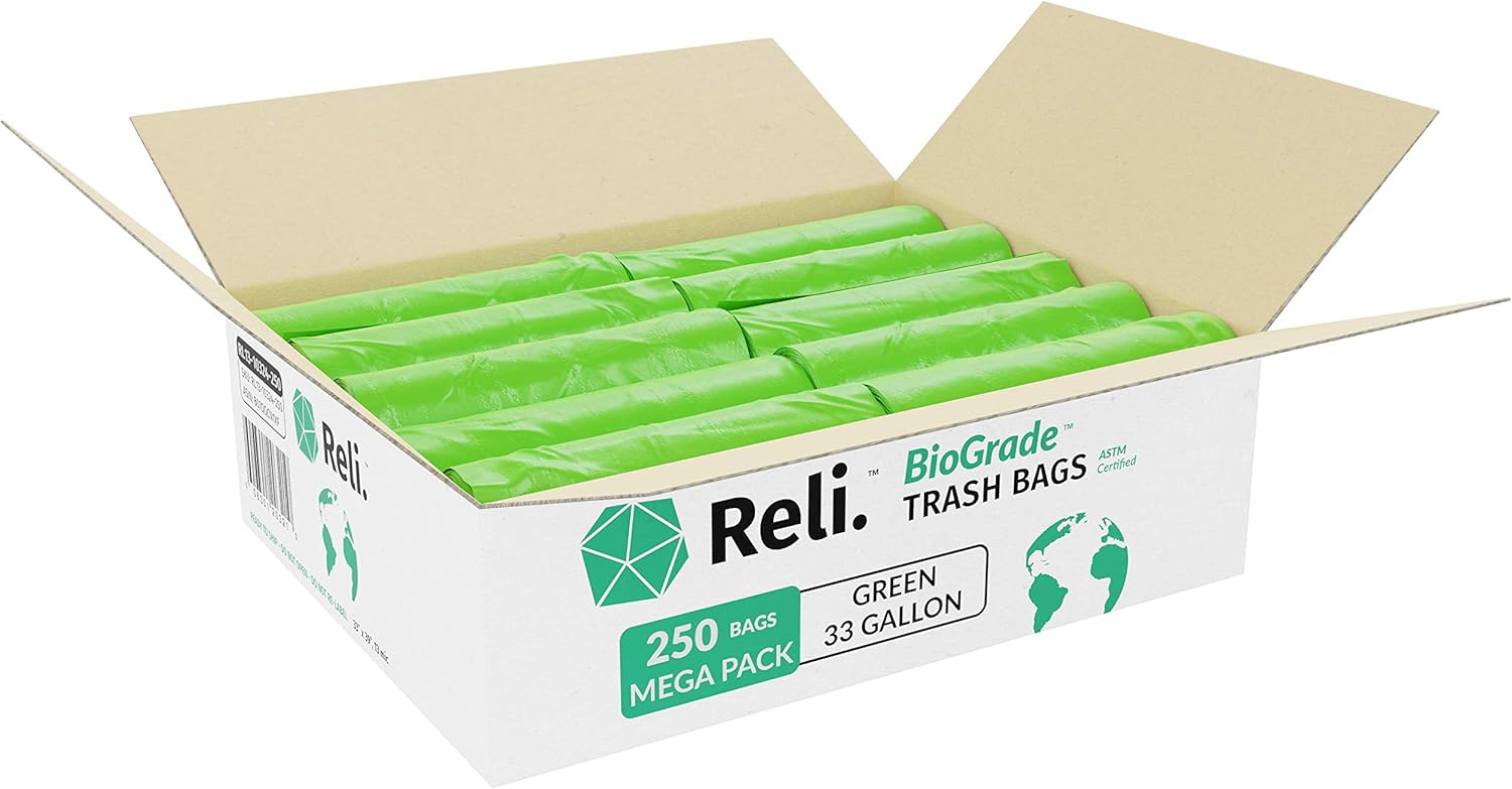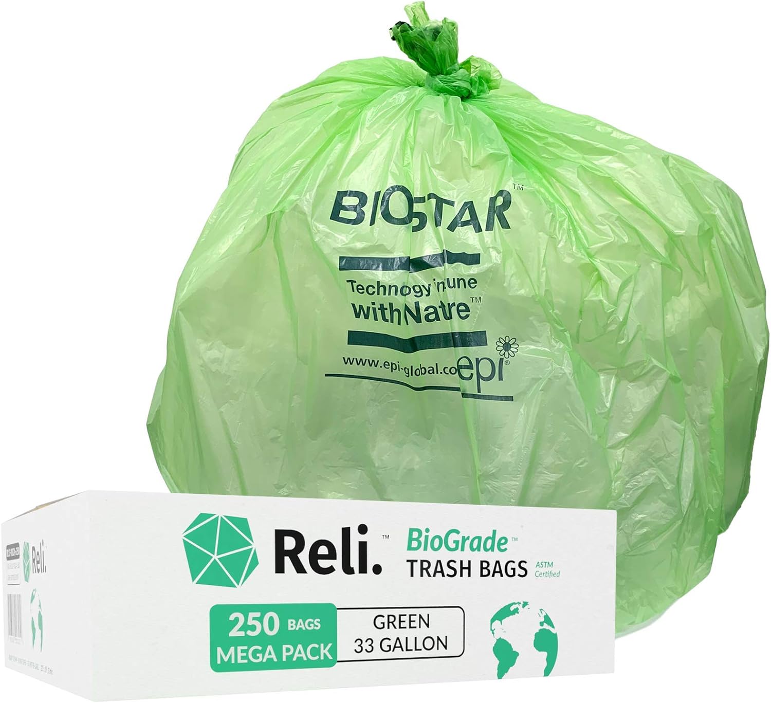 Reli. Biodegradable 33 Gallon Trash Bags | 250 Count Bulk | ASTM D6954 | Green | Eco-Friendly | Oxobiodegradable Under Certain Conditions (See Product Description)