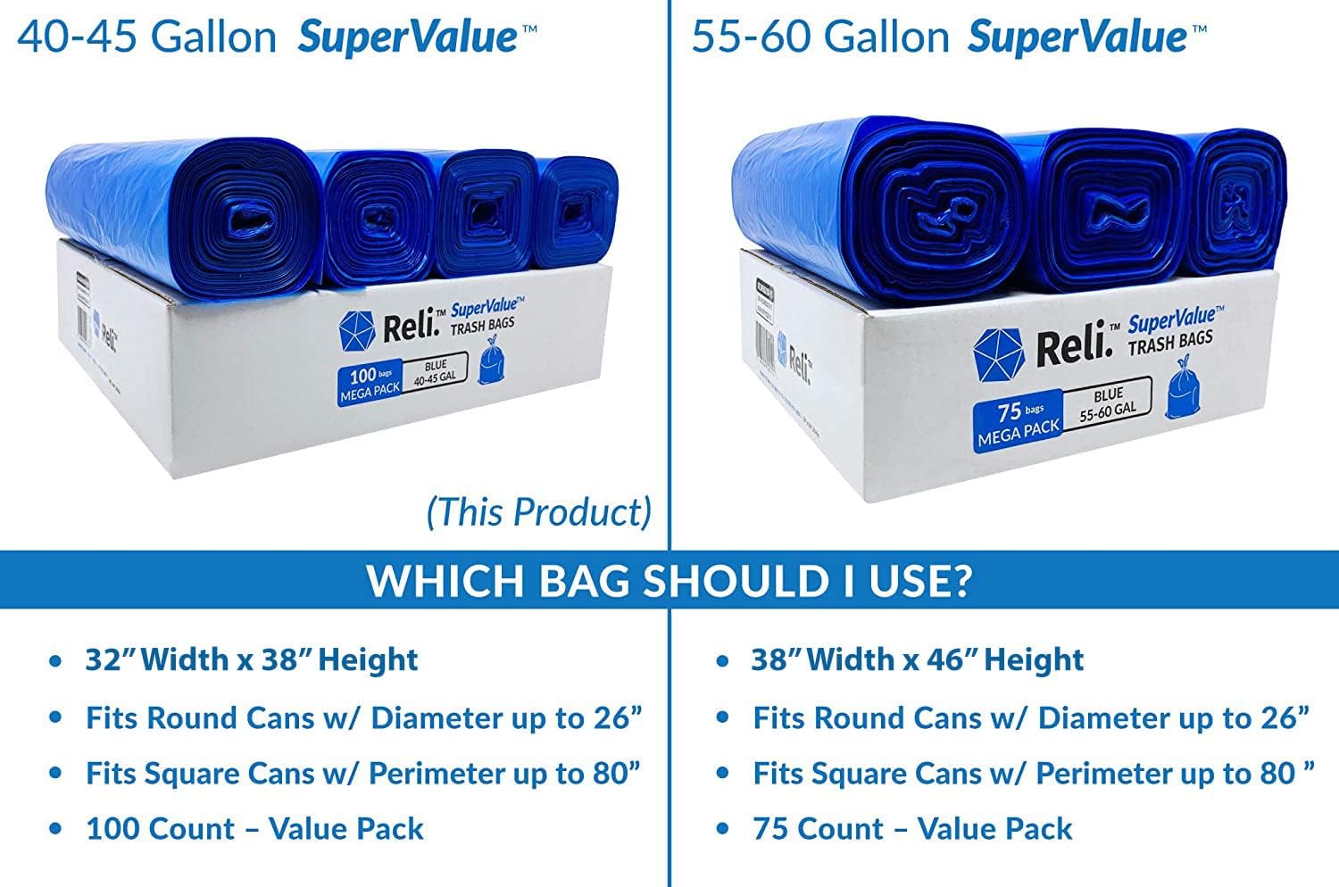 Reli. SuperValue 40-45 Gallon Recycling Bags | 100 Count | Blue Trash Bags