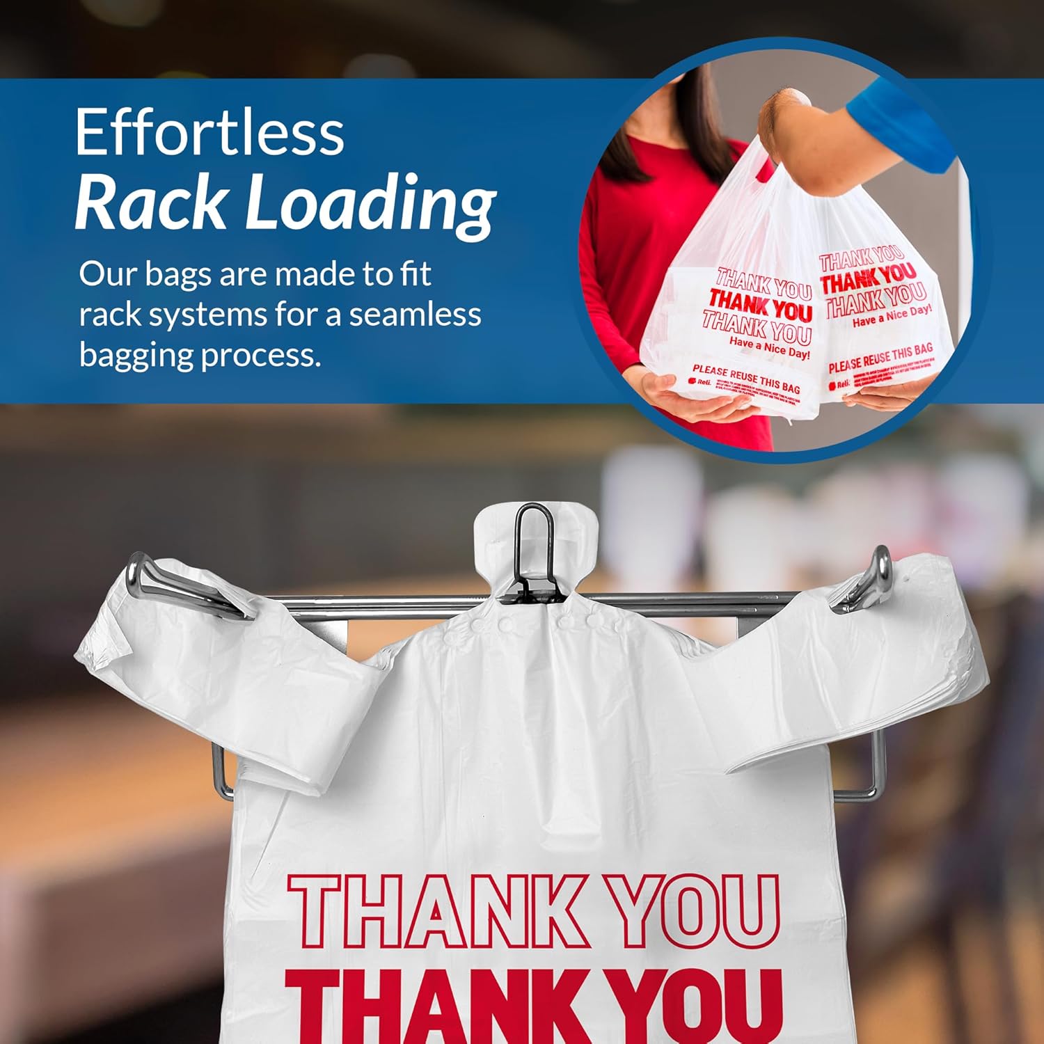 Multi-Purpose Use: Perfect for groceries, retail, restaurants, take-out, shopping and more—our plastic bags are designed to handle it all. Compatible with standard rack systems for fast, efficient bagging.