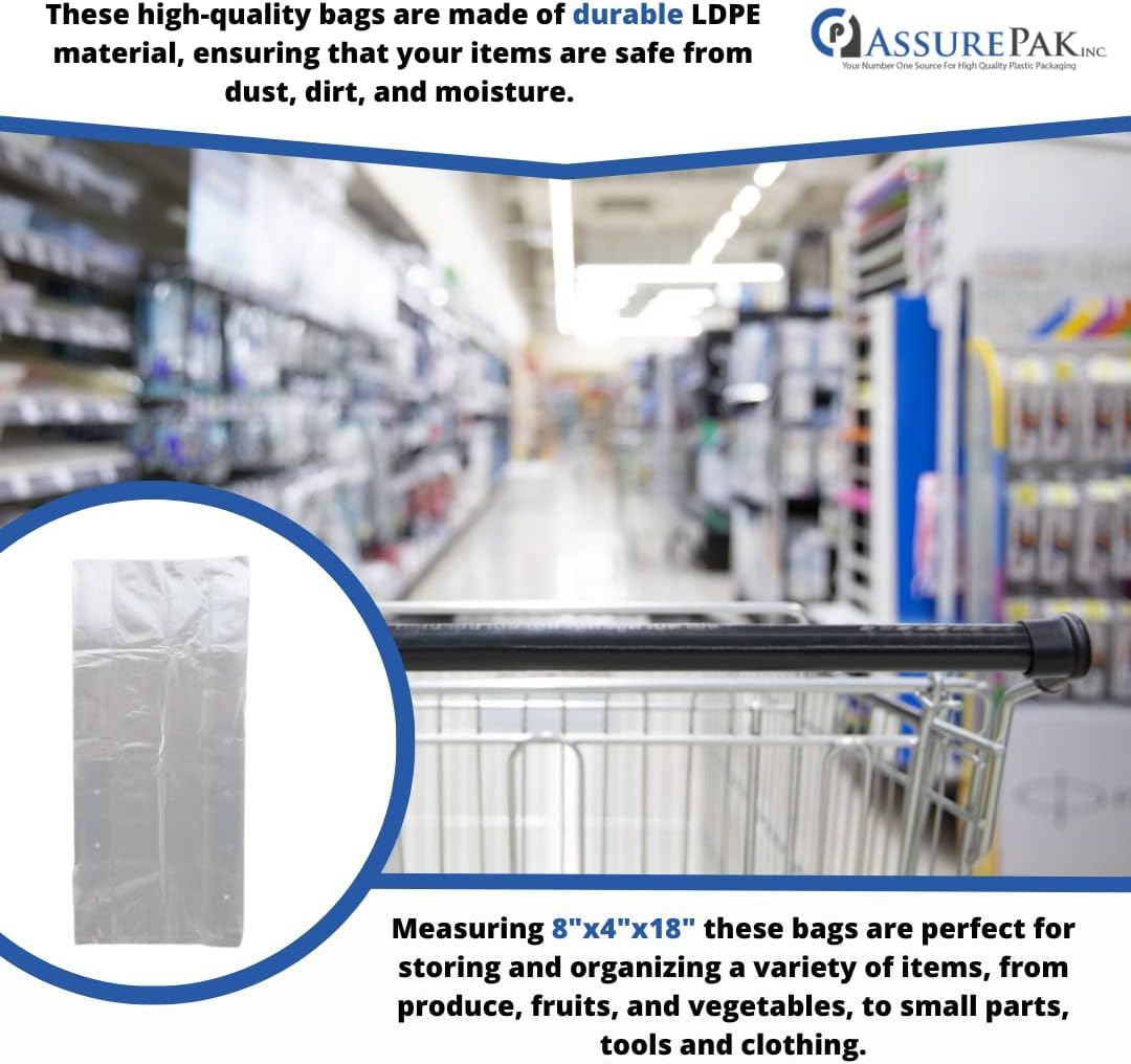 Retail Bags Direct Produce LDPE Poly Vented Bags (With Venting Holes) – 8″x4″x14″ – 1000 Bags – 0.80 mil – Clear