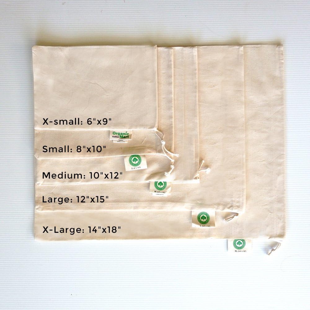 WASHABLE COTTON PRODUCE BAGS WITH MULTIPLE USES: Use the bags to strain yogurt, juice and nut milk. Cook herbs or spices into broths. Store precious china and silverware. These bags can be used as nut milk bags, coffee & tea strainer as well as reusable bread bag. Organize bed sheets. The possibilities are endless. The best part is these bags are washable. So, if dirty, just wash them and reuse them. These are also great organic cotton gifts bags and cosmetic toiletry bags.