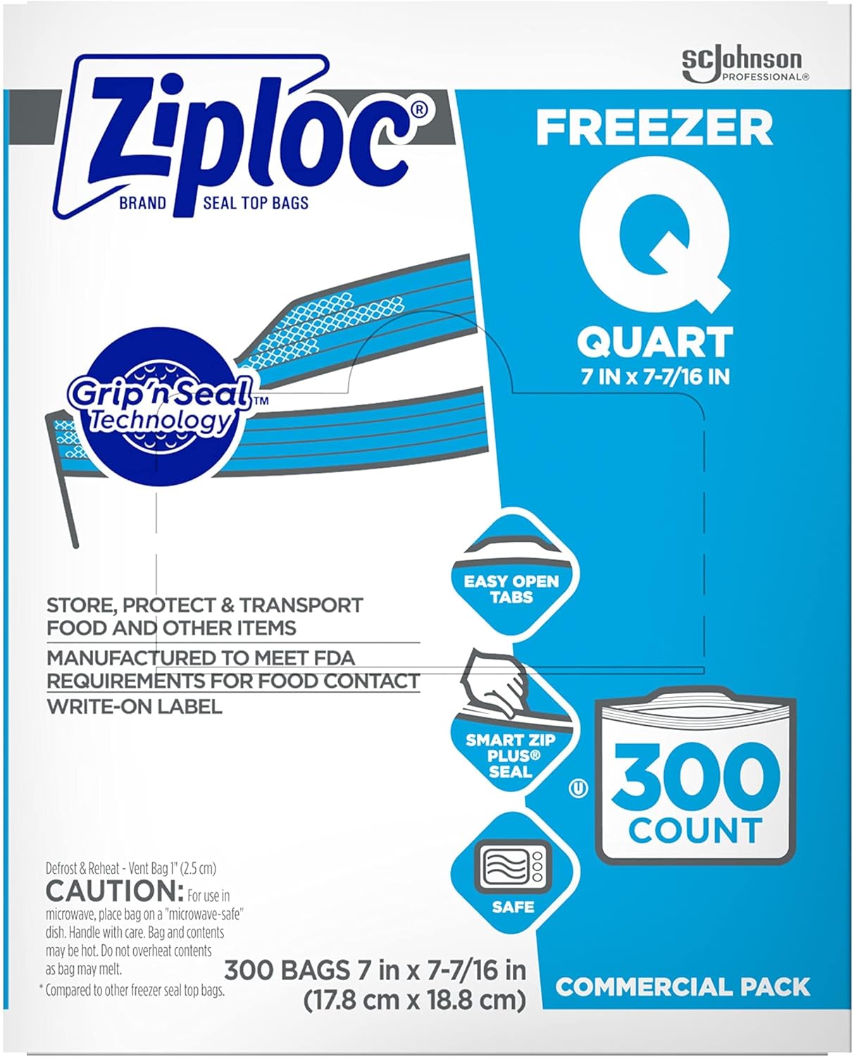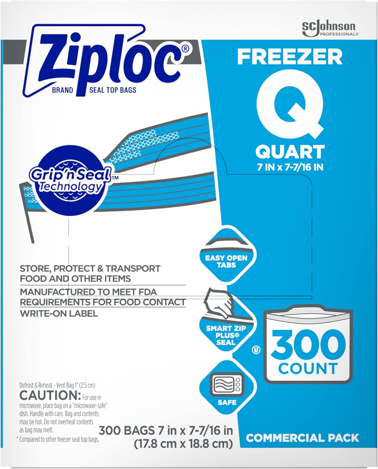 SC Johnson Professional Ziploc Quart Food Storage Freezer Bags, Grip ‘n Seal Technology for Easier Grip, Open, and Close, 300 Count