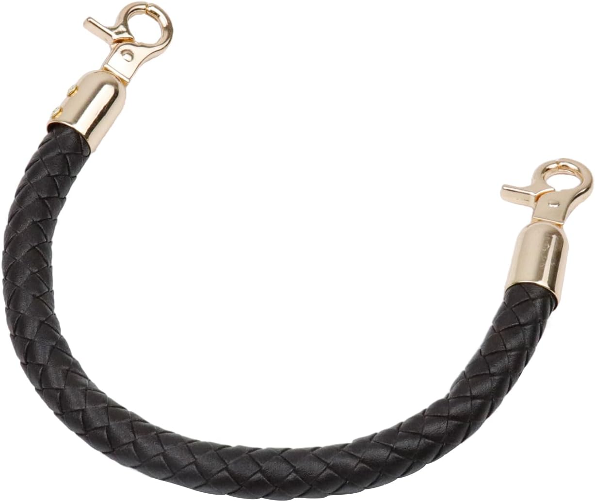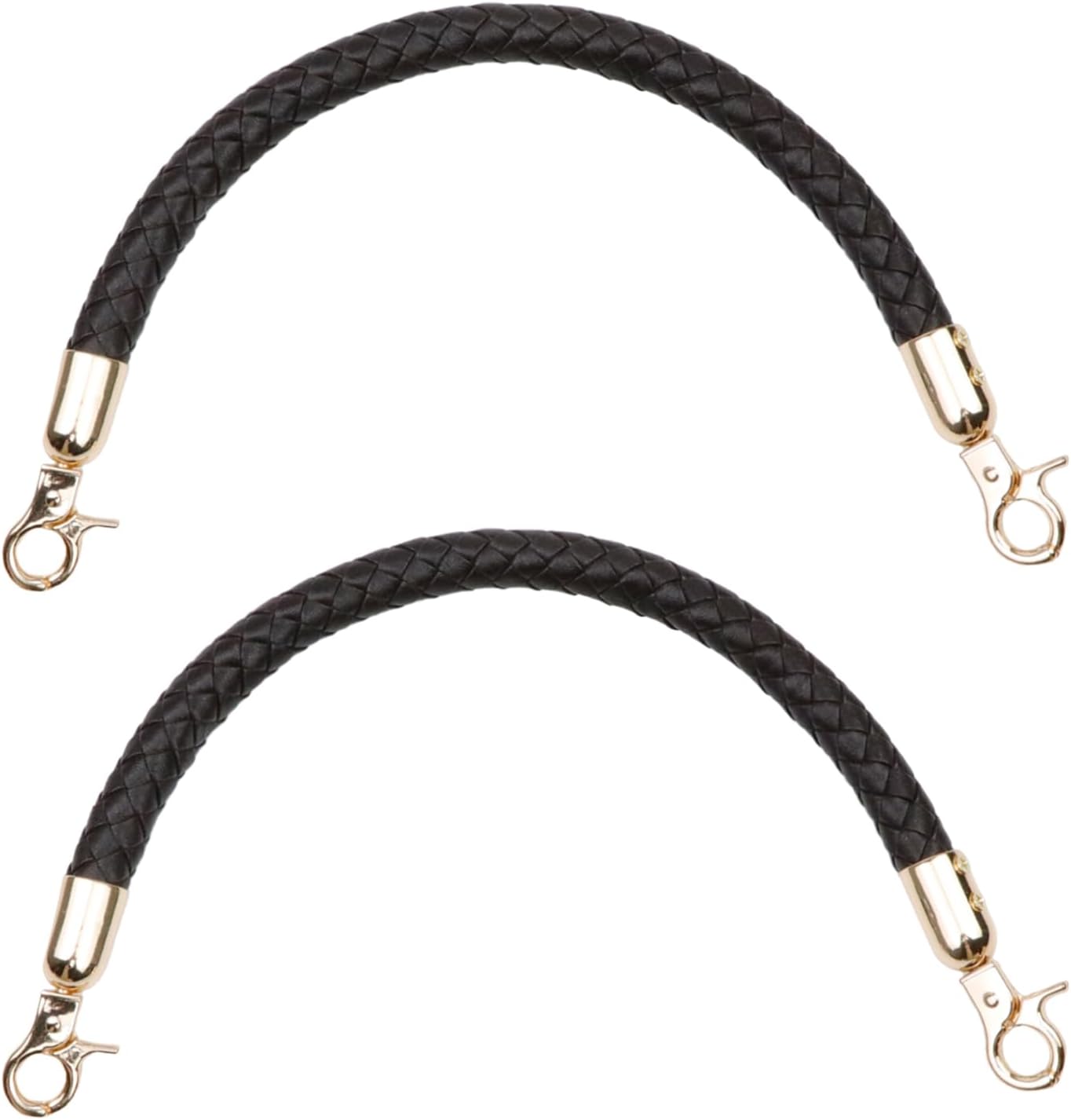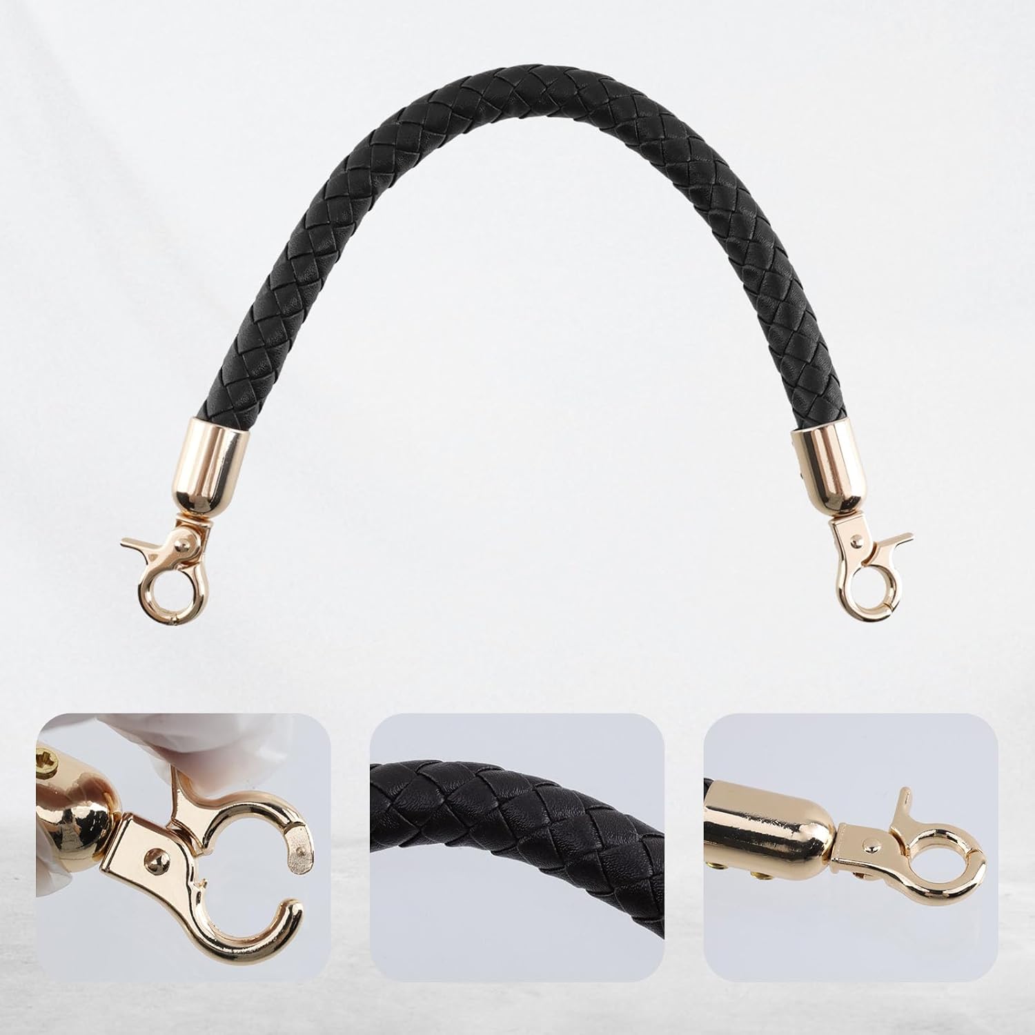 Semetall 2Pcs PU Leather Handbag Handles, Braided Replacement Purse Straps With Gold Spring Buckle for DIY Making, Black and Brown, 11.8″