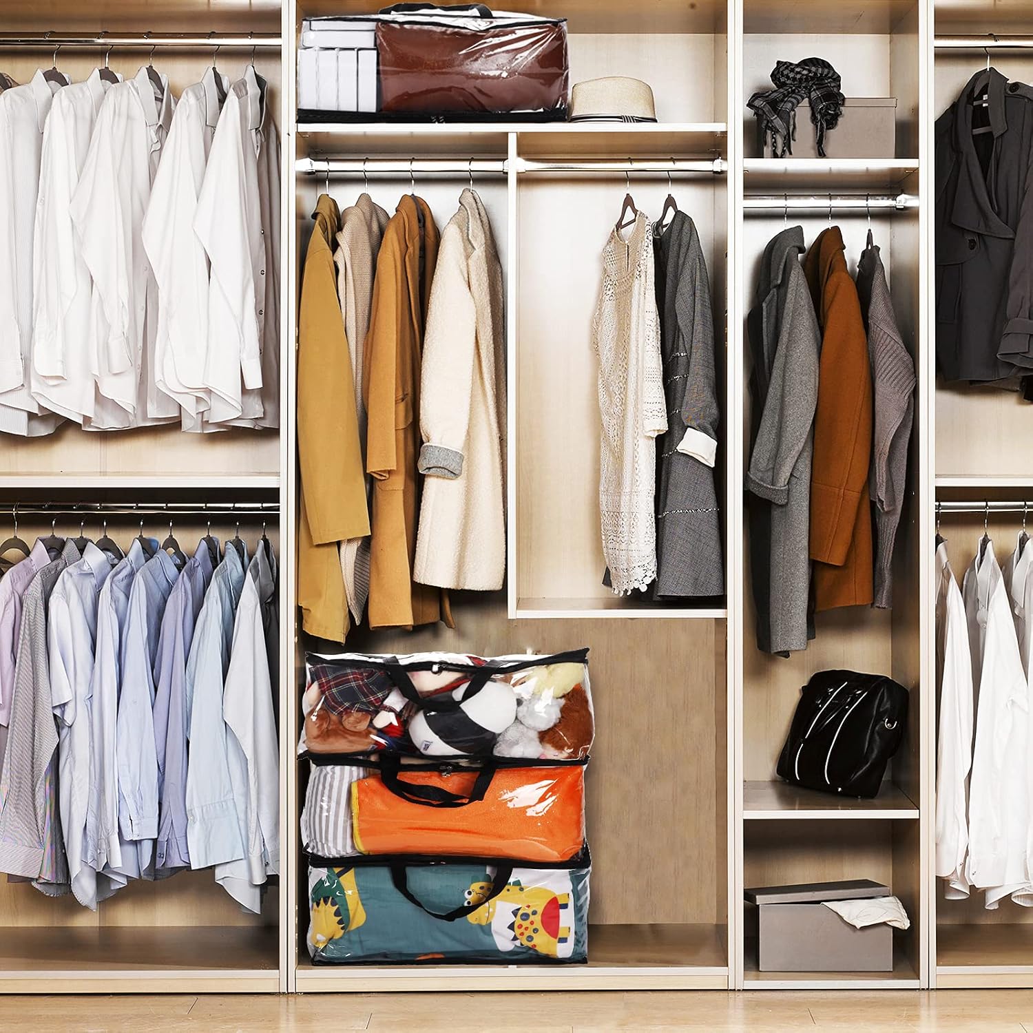 SGHUO Blanket Storage Bags 60L Extra Large Plastic Vinyl Clear Storage Bag for Clothes, Comforter, Bedding, Moving Bags with Zipper and Reinforced Handle (4pcs)