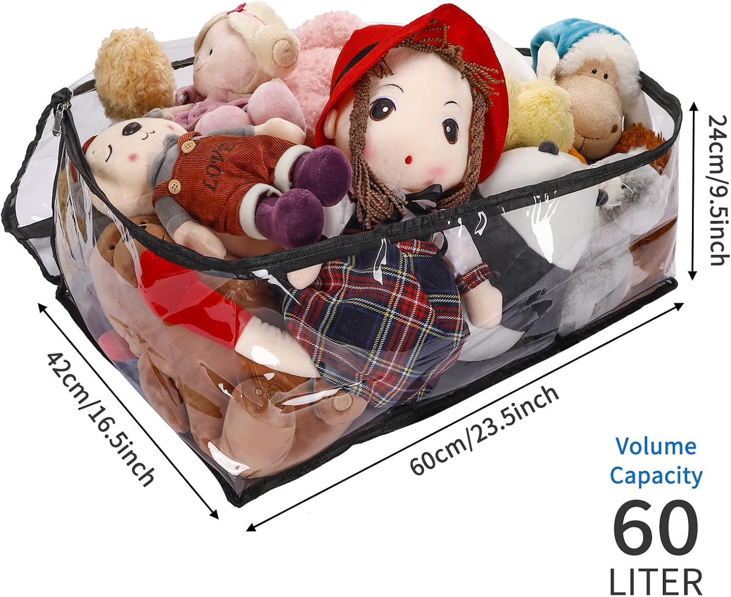 LARGE CAPABILITY: This set contains 4 clear storage bags in size of 23.5×16.5×9.5in, with capability of 60liter/13.2gallon each, that means each bag can greatly store one twin comforter, 3 to 4 queen blankets, dozens of sheets and around half a hundred T-shirts.