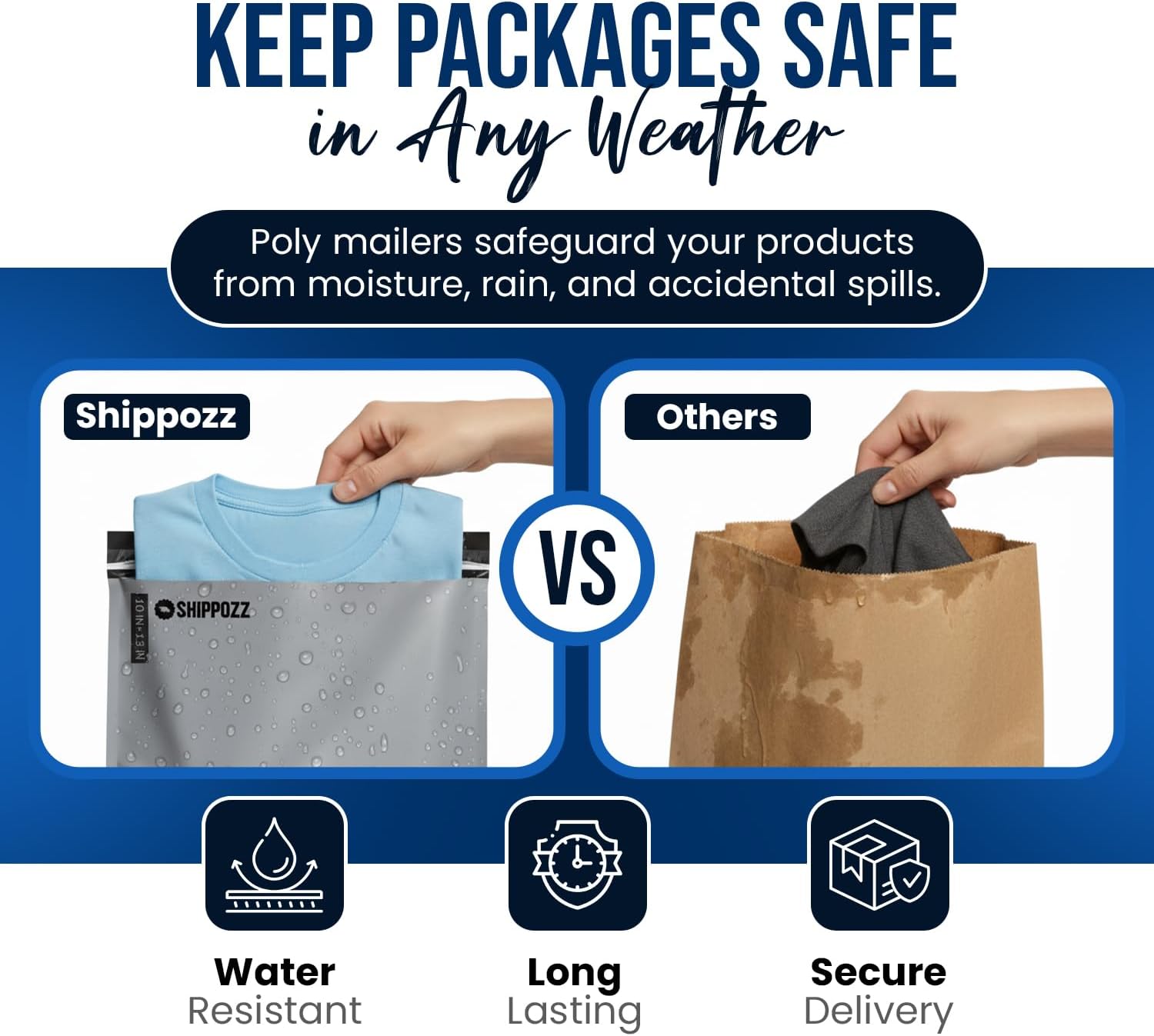 𝗪𝗲𝗮𝘁𝗵𝗲𝗿-𝗥𝗲𝘀𝗶𝘀𝘁𝗮𝗻𝘁 𝗣𝗿𝗼𝘁𝗲𝗰𝘁𝗶𝗼𝗻: Shippozz poly mailer envelopes safeguard your items from moisture, dirt, and rough handling during transit. Their durable, weather-resistant build ensures reliability even in rainy conditions, making them a dependable packaging choice for personal shipments, boutiques, and online sellers shipping with confidence.
