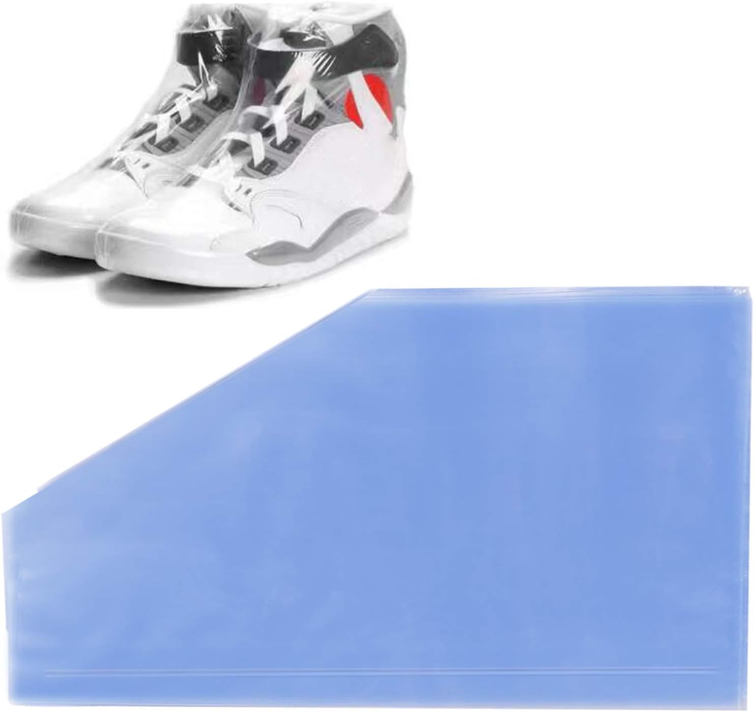 Shoe Shrink Wrap Set: Including 50 piece shoe shrink bags for 50 pairs of shoes, 10×17.7 inches, showing the packaging shoe effect