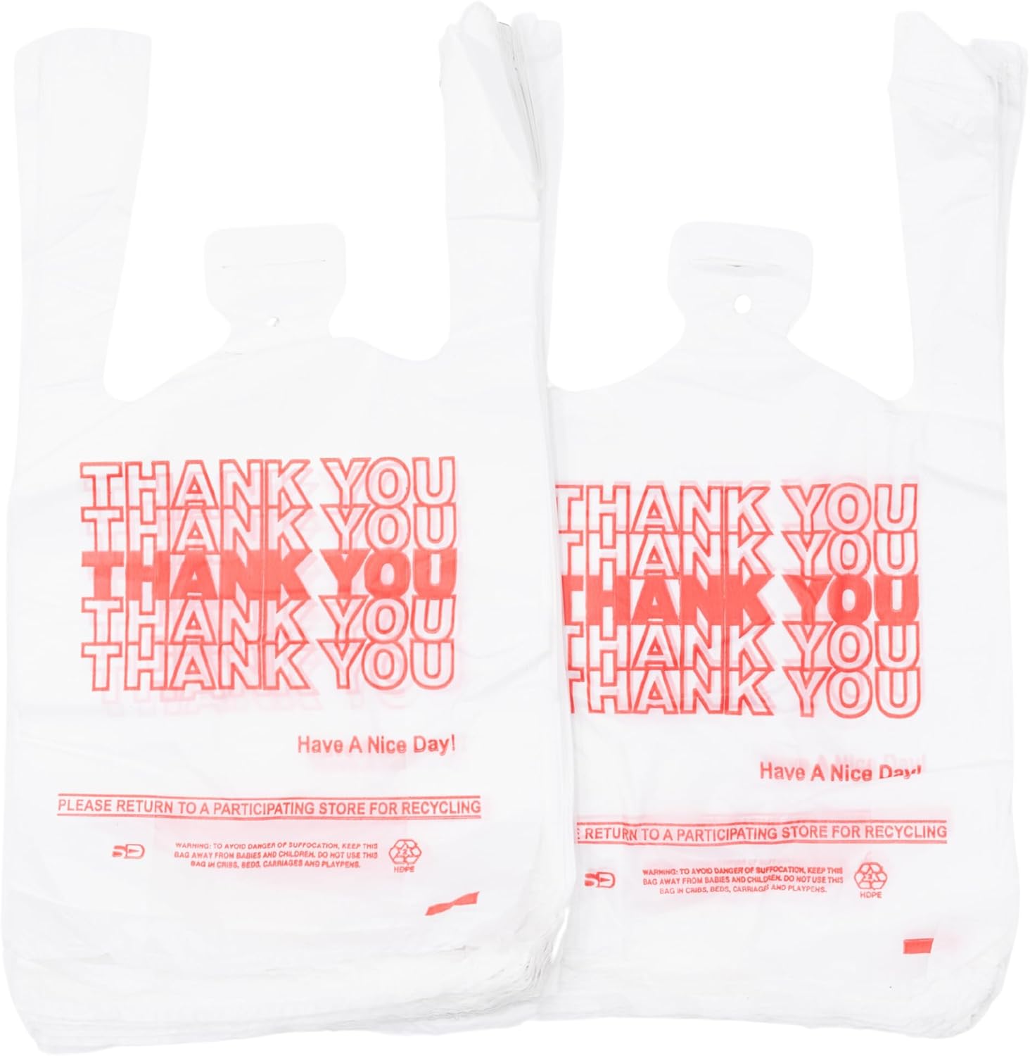 Small Economy “Thank You” T-Shirt Bags – 1/12 BBL – 7″X3.5″X13″ – 1000 Bags Bulk – 13 Mic – White – For Retail, Groceries, Merchandise, Convenience Store, Supermarket, Restaurant