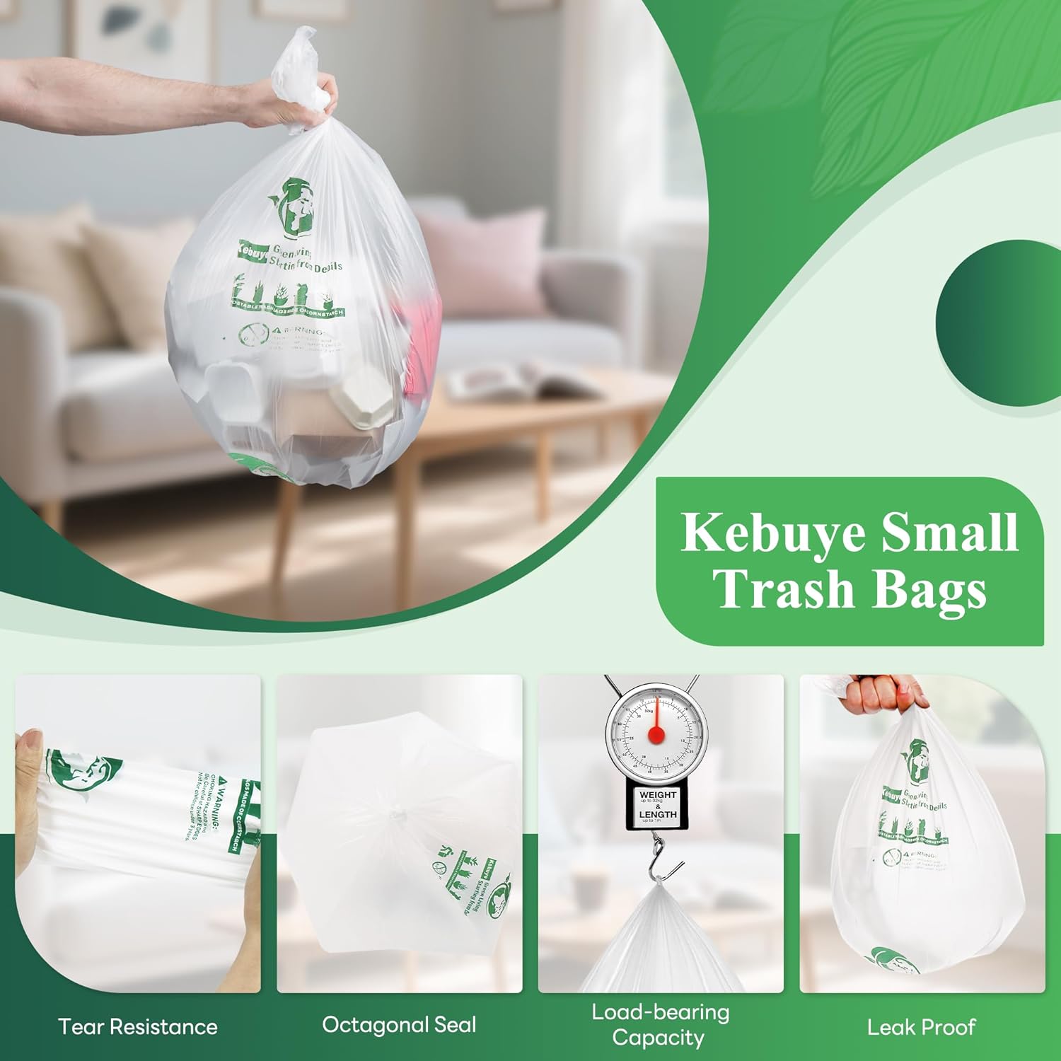 Small Trash Bags 1.2 Gallon, Biodegradable Gallon Waste Bag, Mini Compostable Strong Bathroom Wastebasket Can Liners Garbage Bags for Home Office Kitchen Fit 5 Liter 5L, 1 Gal, White