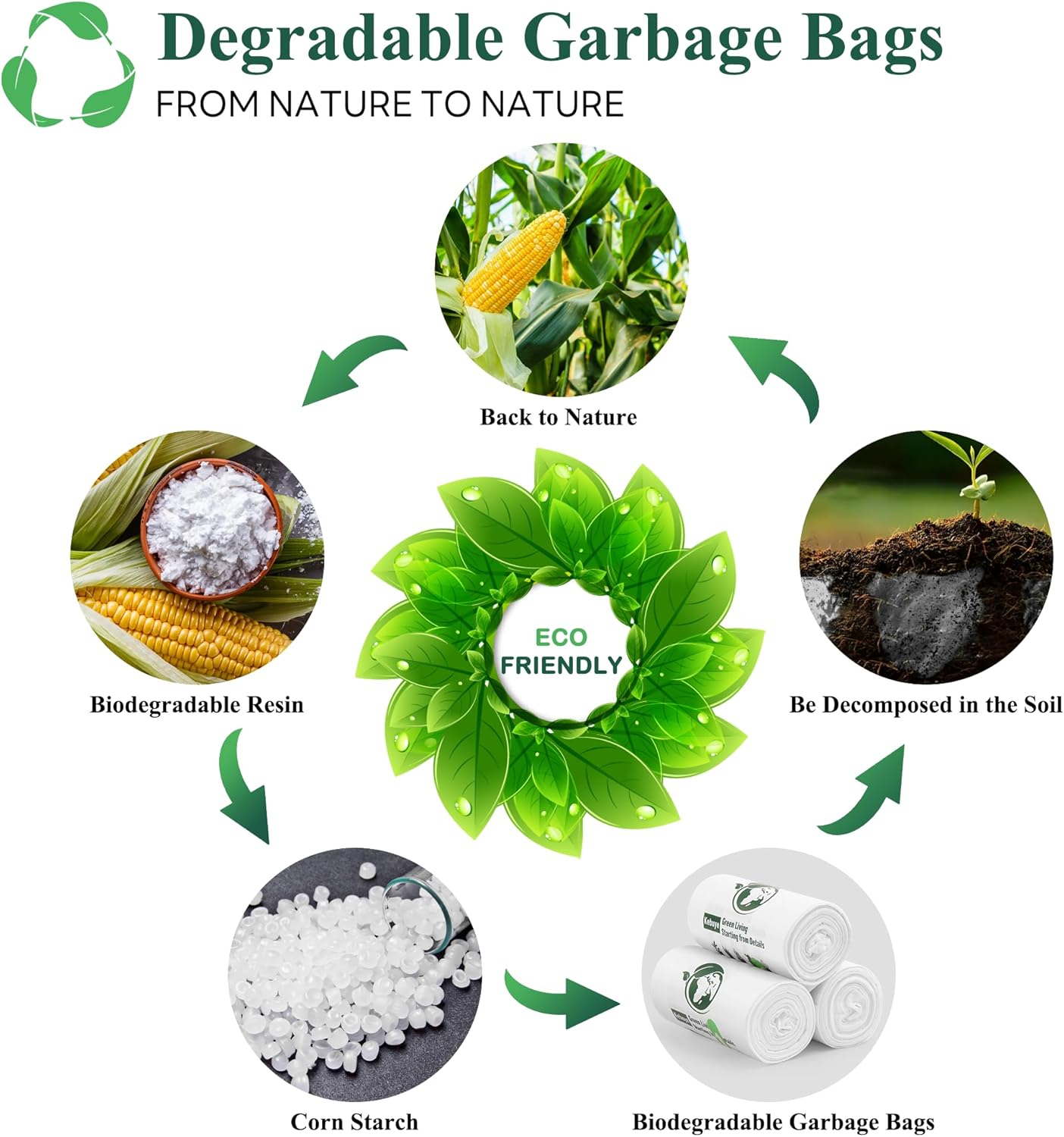 【Compost Trash Bags】Our small trash bags are all made of plastarch material(PSM) with the U.S. standard ASTM D6866 PSM based on natural renewable plant starch extract, compostable in backyard or home composting facilities without causing damage to the environment