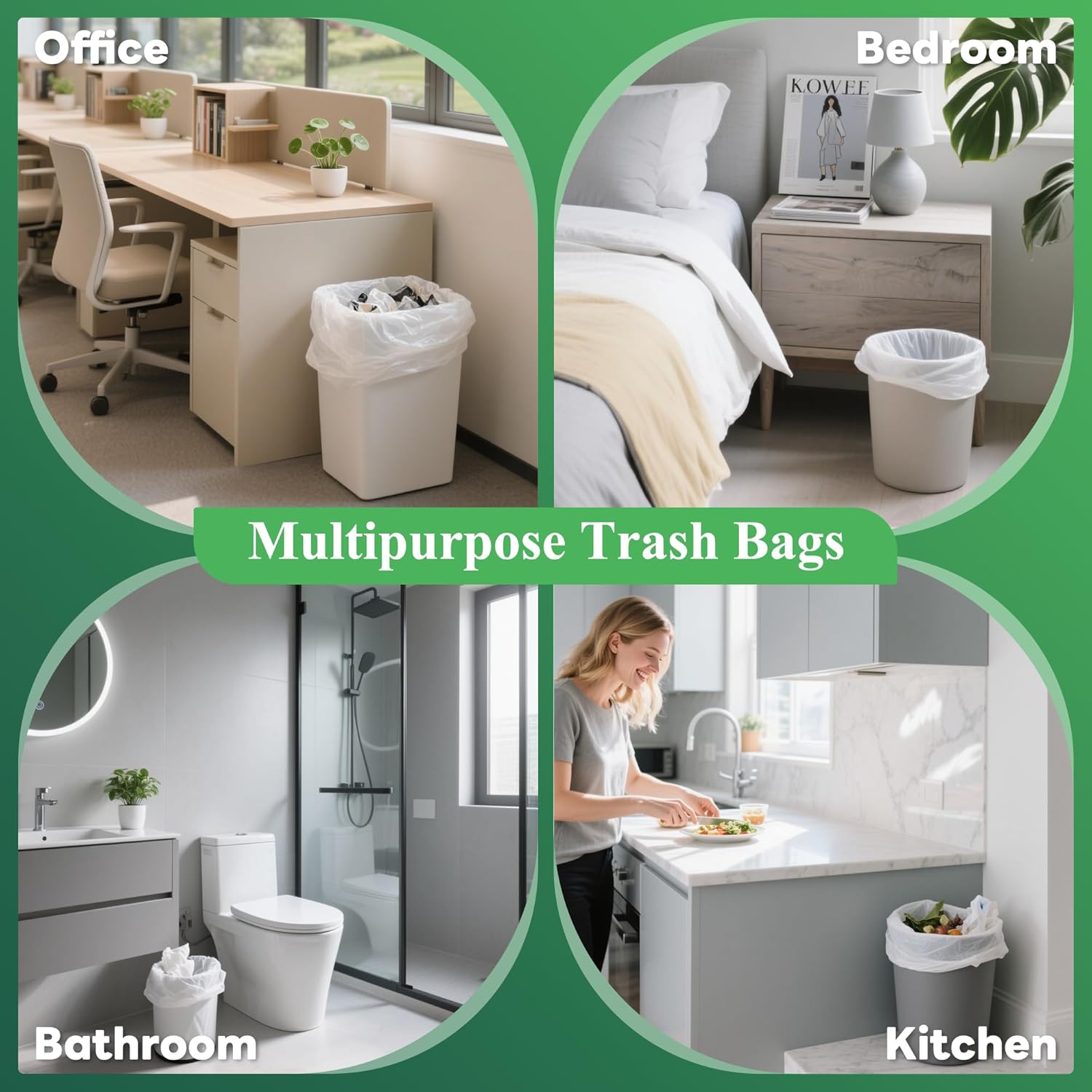 【Muti-purpose Waste Bags】The bin can liner is clear white in color,looks clean and refine, perfect for office, kitchen, bathroom, bedroom, living room, baby diapers, paper shredder car, cleaning dog waste & cat litter and trash recycling