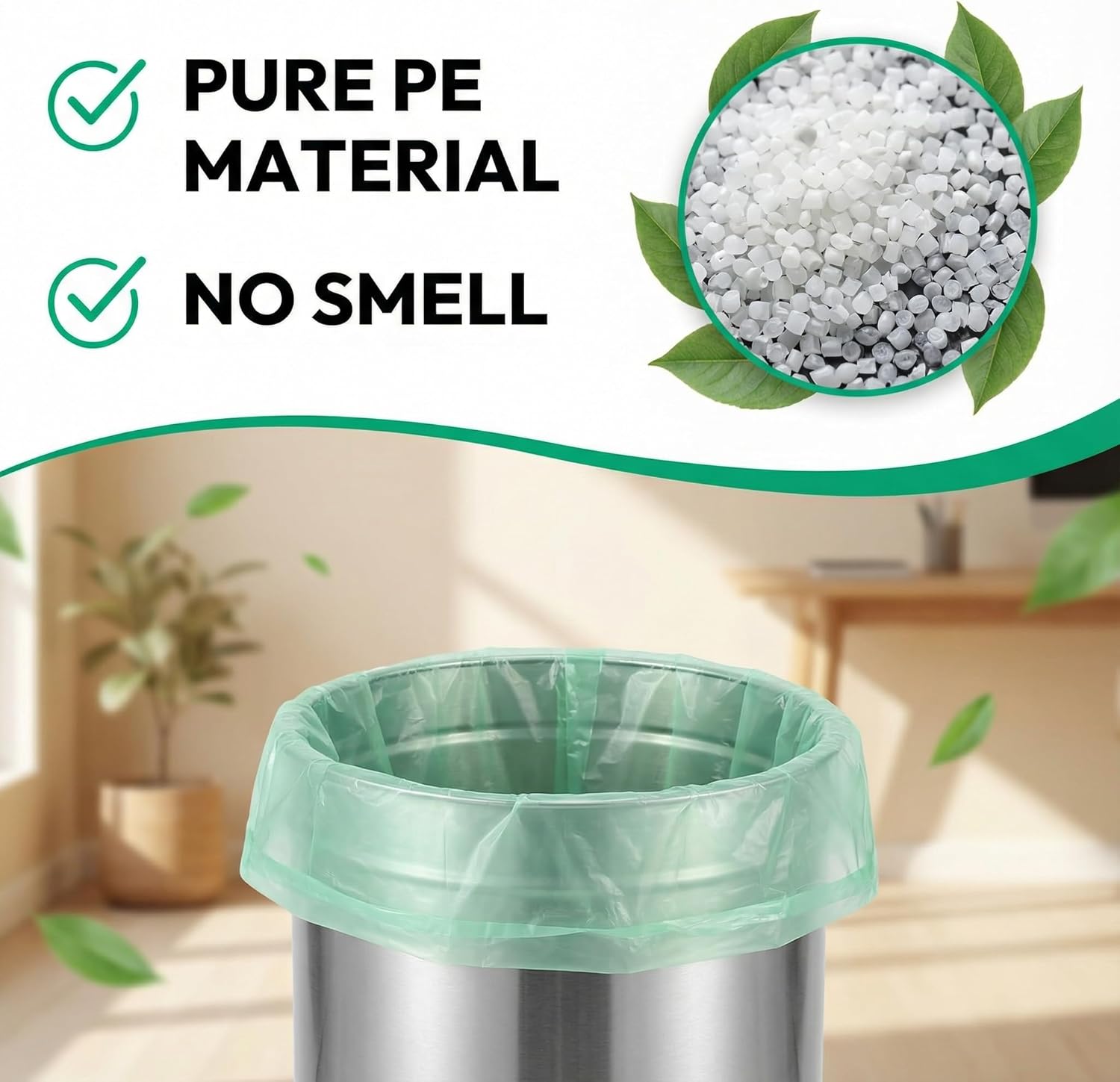 【Odor-Free】The excellent sealing makes the garbage bags locks in odors. The unscented garbage bags are suitable for people who are sensitive to odors, keeping your living space fresh.
