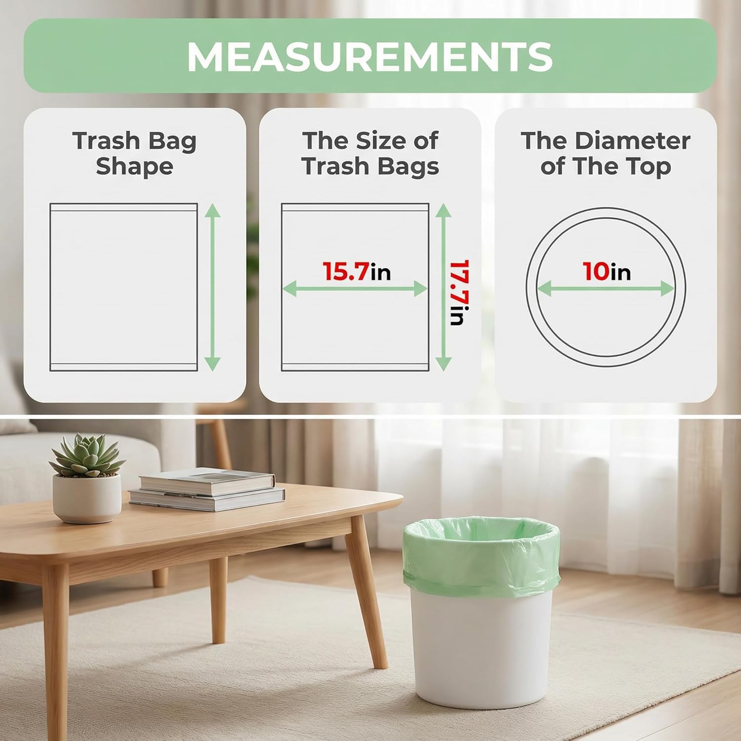 【Versatile Use】These mini trash bags are versatile and suitable for various settings, including home offices, dorm rooms, bathrooms and so on. One bag fits multiple needs, helping you maintain a clean and organized home.