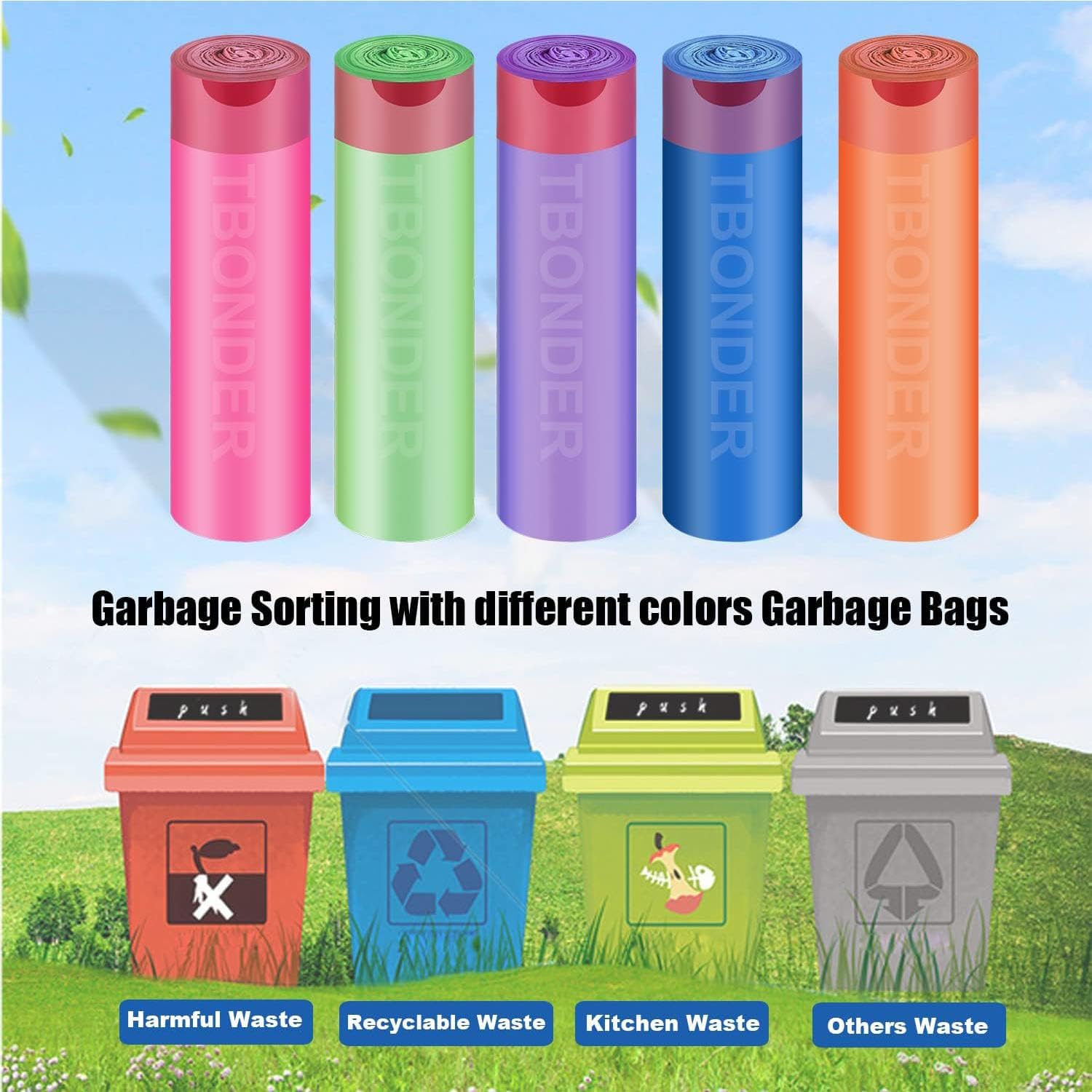 【Versatile Garbage bags & Warm Service】These 4 gallon garbage bags drawstring have 5 colors(orange, pink,blue, purple, green), you can sort out garbage with different color garbage bags. These bathroom garbage bags 4 gallon are great for office/kitchen/ living room/ bedroom/ bathroom/ car/pet waste/ diapers as well as storing clothes and plush toys.