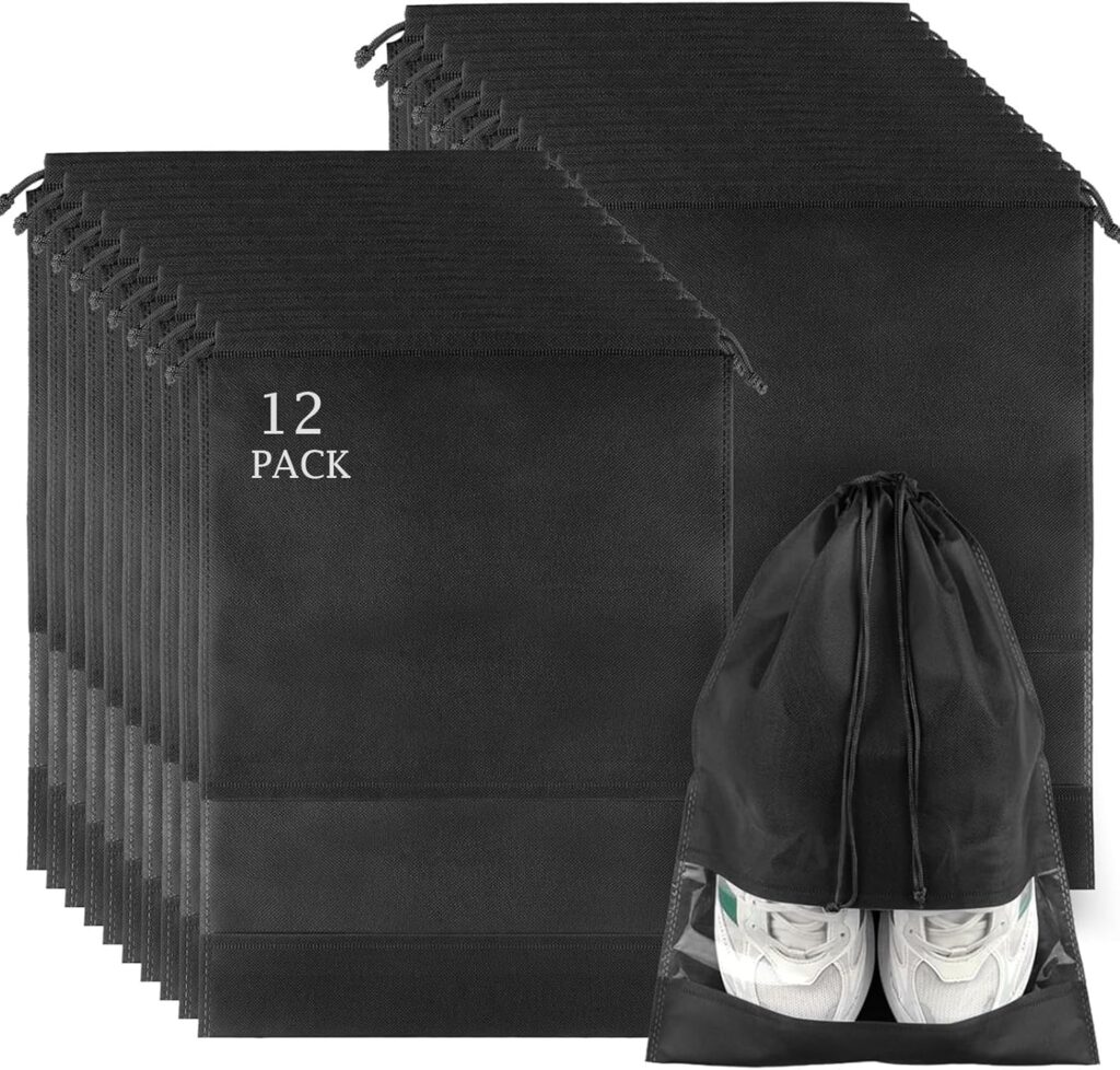 Large Capacity & Lightweight: Weighing just 5.6 oz, the bag measures 16.1″ x 9.1″ x 4.7″, fitting shoes up to US size 14. It easily fits into luggage, backpacks, or duffel bags, keeping your belongings or car trunk clean from dirt caused by shoes