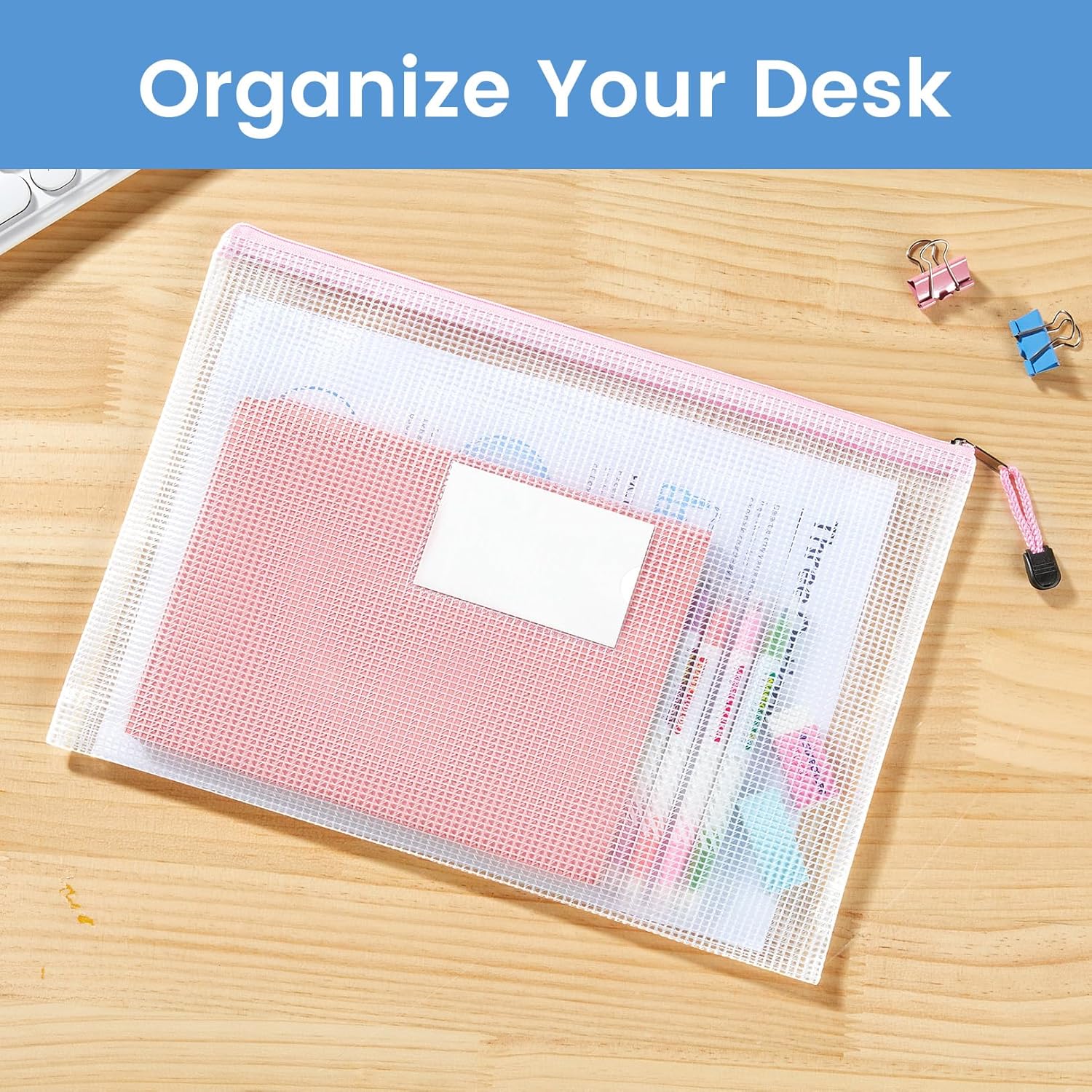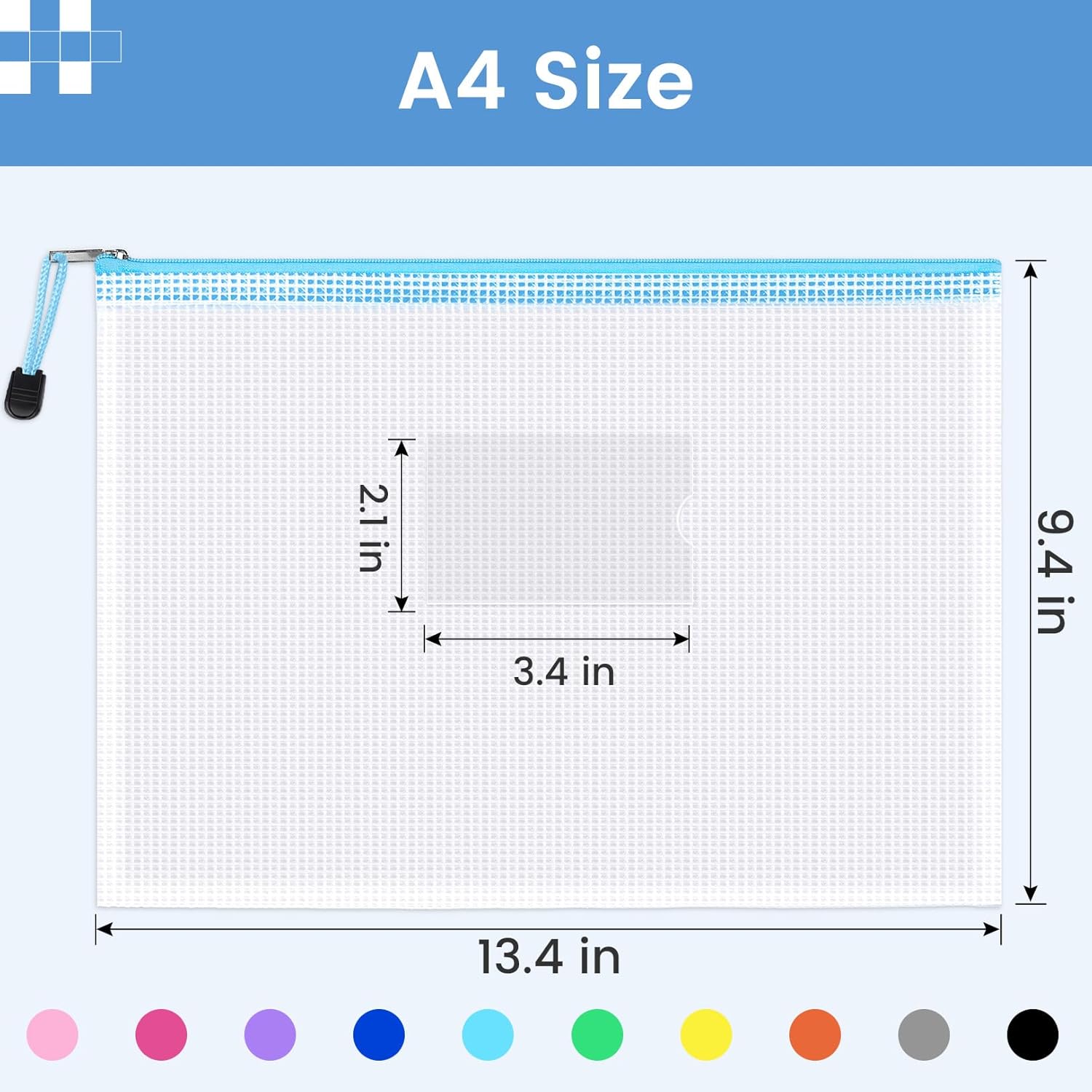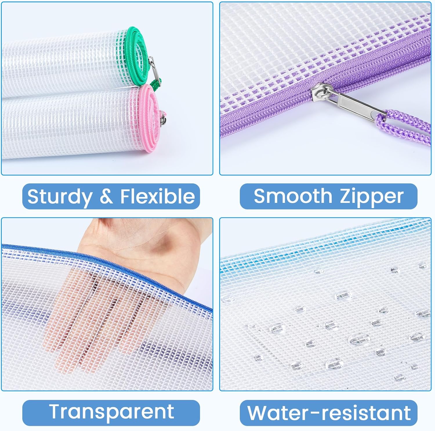 Sooez 20 Pack Mesh Zipper Pouch Bags, A4 Letter Size, Zipper Bags with Label Pocket, Waterproof Pouches for Classroom Organizer, Board Game Toy Storage, Document Bag for Teacher School Office Supplies